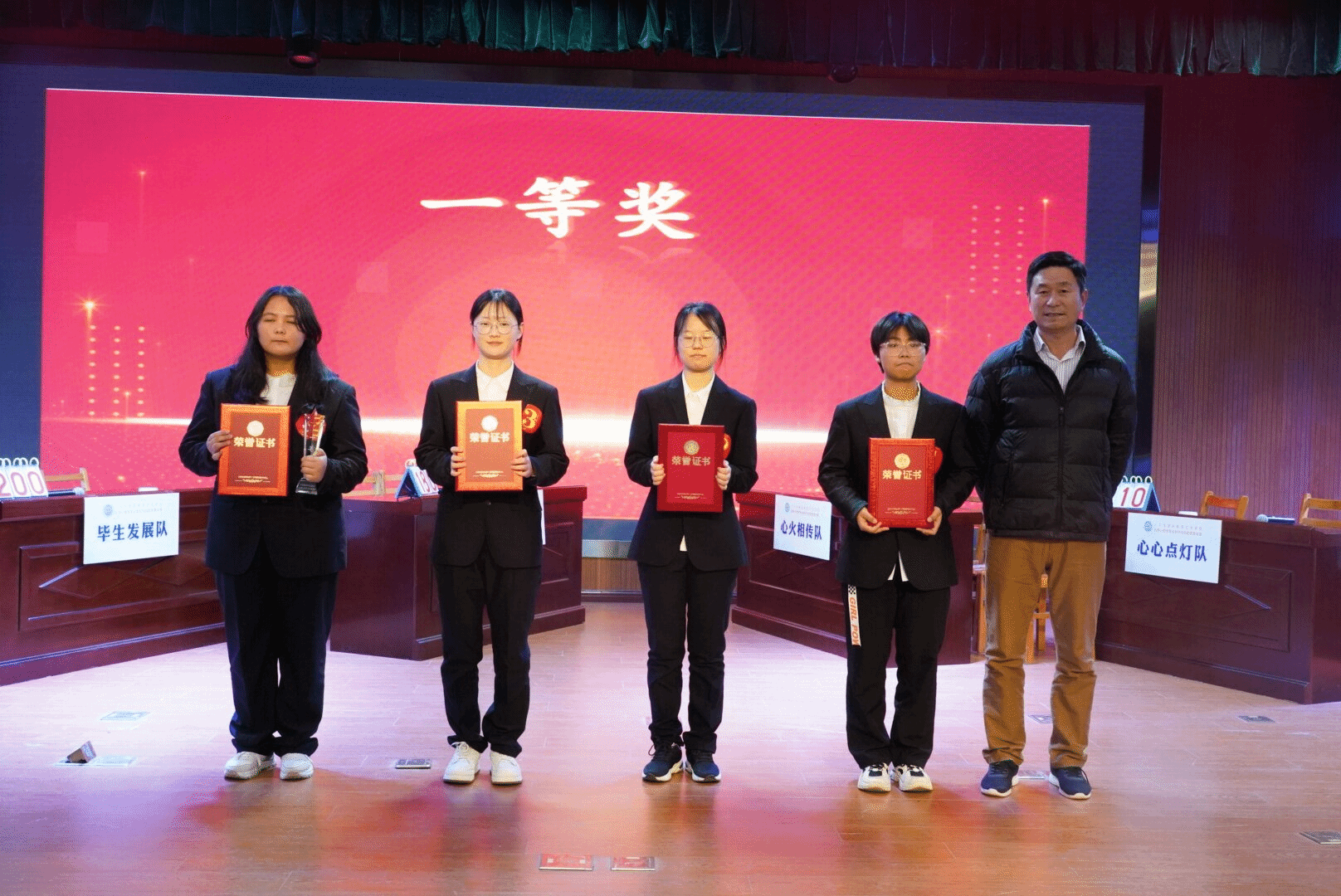 经过激烈的竞争,“心心向荣队”脱颖而出,拿下本次比赛的一等奖;“心火相传队”“心心点灯队”荣获二等奖;“毕生发展队””心态王者队““弗洛伊德说得队”获得三等奖。其中,李幼敏同学凭借过人的专业知识储备荣获本次比赛的个人优秀奖。