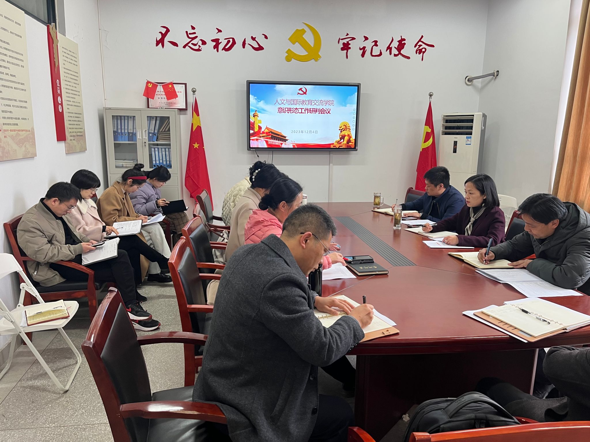 为进一步贯彻落实意识形态工作责任制,强化忧患意识和底线思维,统一思想、明确责任、抓好落实,12月4日上午,人文与国际教育交流学院在惟新楼471会议室召开2023年度下半年意识形态工作研判会。学院党政班子成员、支部书记、各系(中心)主任、全体辅导员、科级干部参加会议。会议由学院党总支书记金晓琴主持。