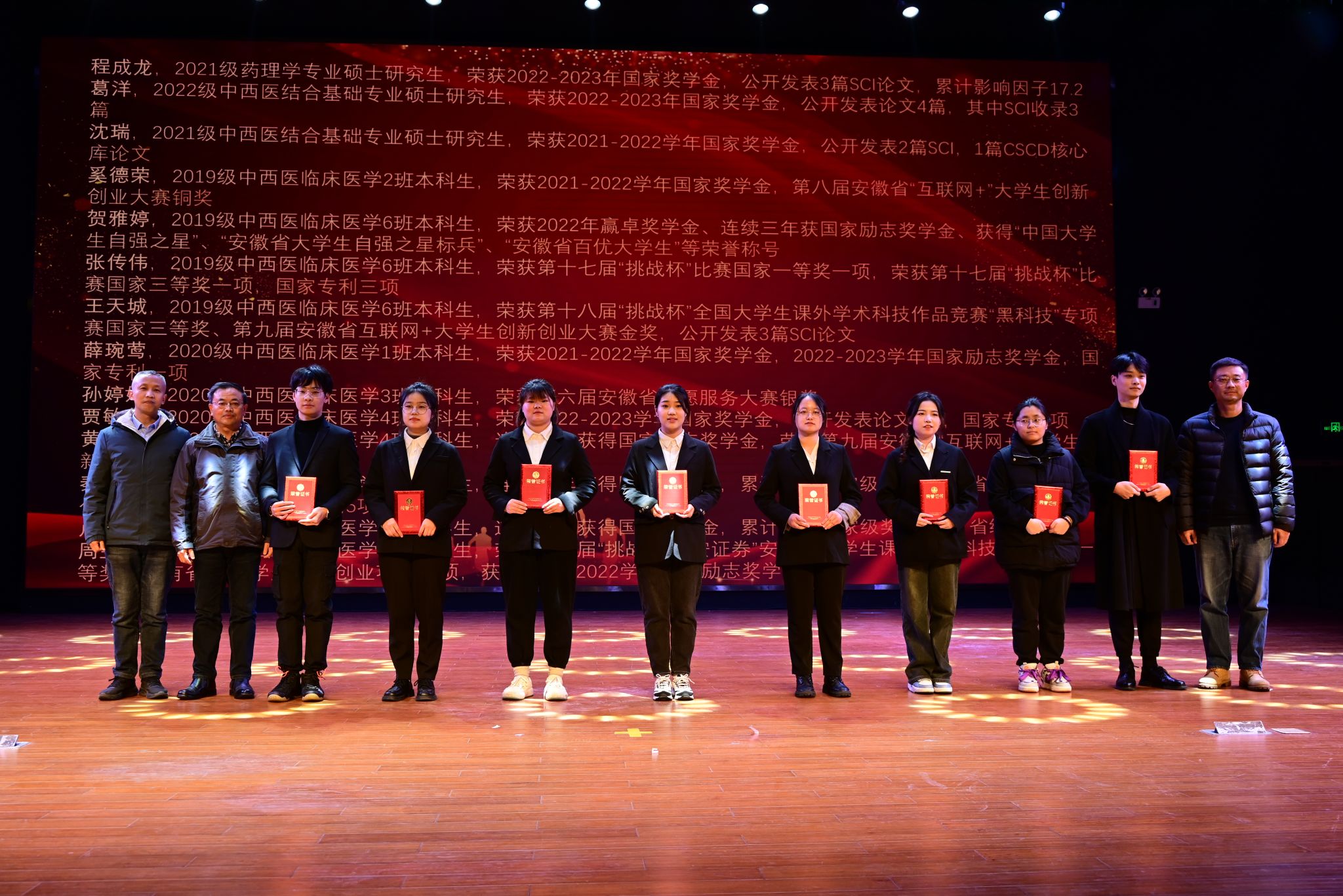 12月11日晚,中西医结合学院2023年“三全育人”表彰大会暨迎新晚会在大学生活动中心举办。校党委常委吴达武,学生处处长冯祥,校团委副书记彭程,学院党委书记尹必武、院长蔡标、党委副书记顾义俊、副院长王靓到场指导,并为获表彰学生颁奖。学院师生代表500余人参加活动。