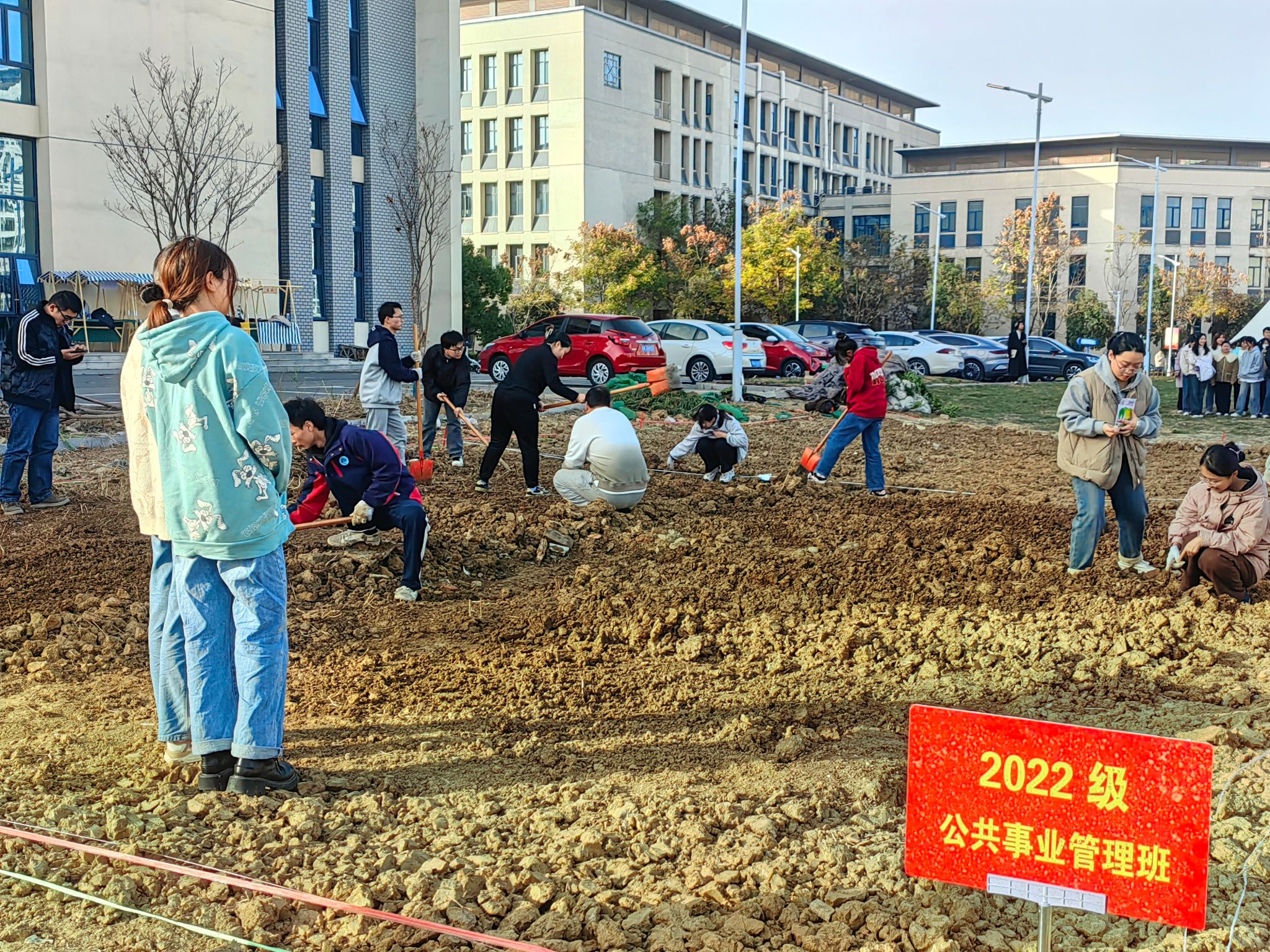 为顺利推荐劳动教育实践活动,确保同学们“劳”有所获,学院尽最大可能为各班级提供了各项服务,包括翻地、松土、购买工具、划分地块等准备工作,并从各班遴选了1-2位负责人。