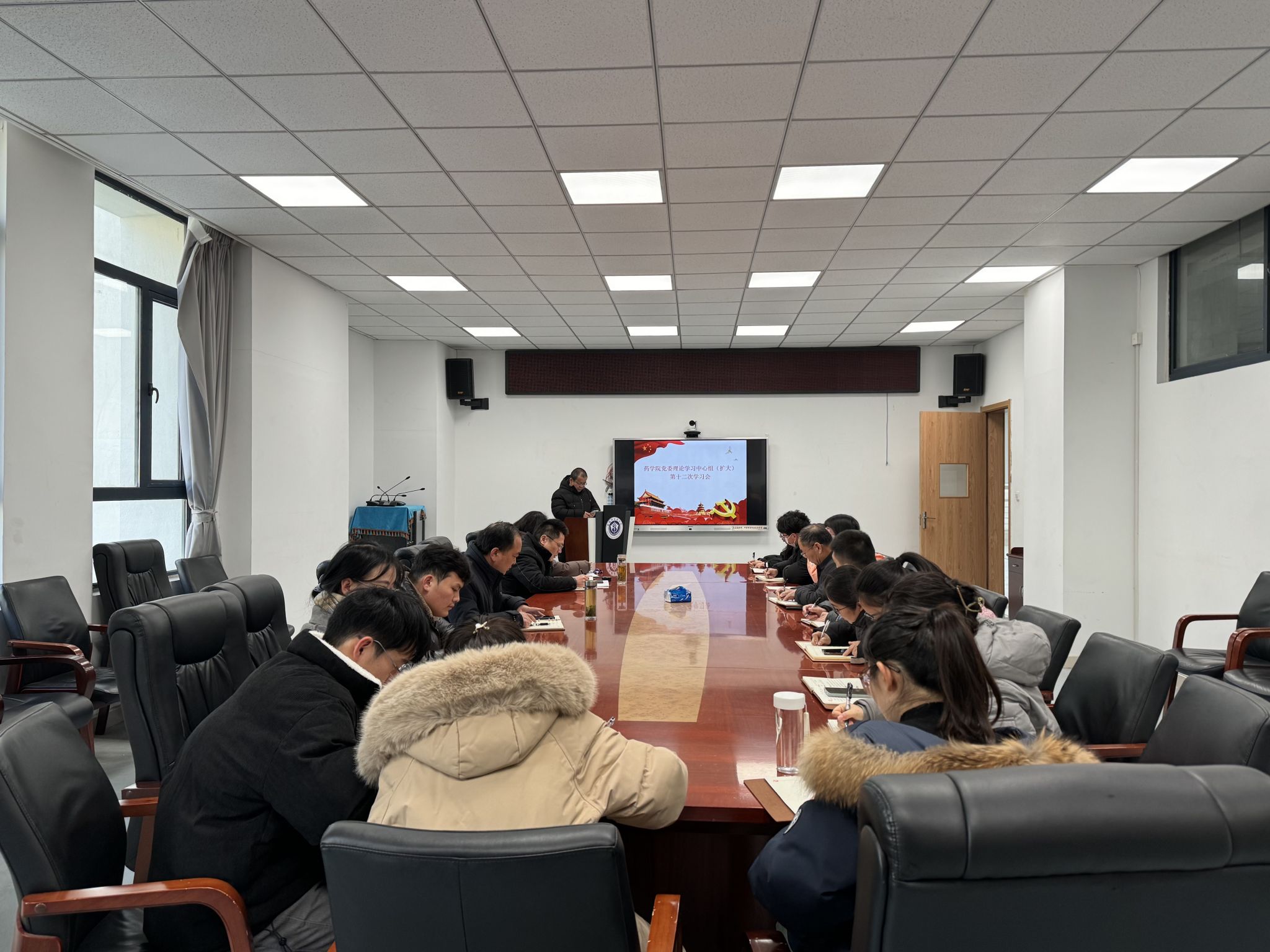 12月20日上午,药学院党委召开理论学习中心组(扩大)第十二次学习会,马克思主义学院副院长郭跃教授受邀做专题辅导讲座。学院党政领导班子成员、党委委员、各支部书记参加学习。