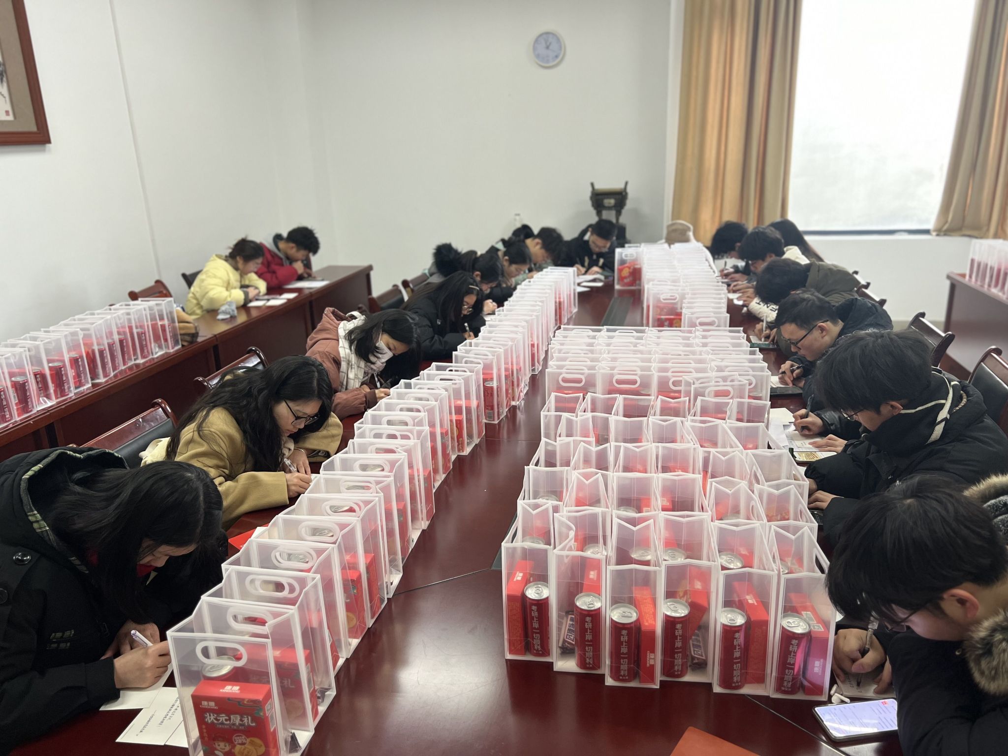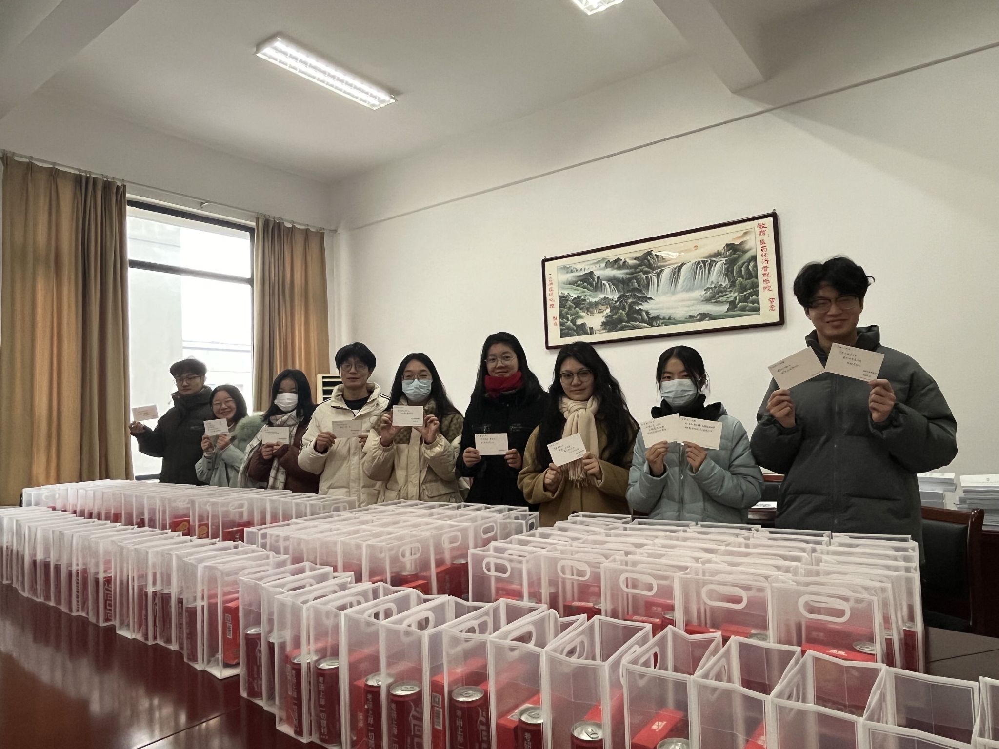 本次考研加油礼包包含:一瓶带有学生姓名的定制可乐,祝愿“百事可乐,事事顺利;一块补充能量的定制士力架,寓意“士气如虹,全力以赴”;一块状元饼,代表“金榜题名,一举夺魁”;一张写满学弟学妹们祝福的卡片,传递着学院对考研同学最真诚的鼓励。学院为考研同学送去了考研大礼包,希望他们能在最后阶段调整好自己的心态,做好最后的复习工作,以最好的状态迎接后面的考试。且挨过腊月寒冬,雪尽后再看春花。
