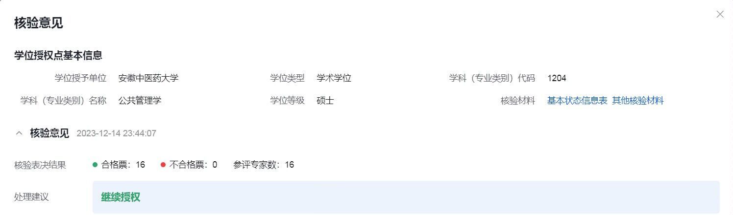 根据《国务院学位委员会 教育部关于开展2023年学位授权点专项核验工作的通知》等文件精神,学校医药经济管理学院公共管理学一级学科硕士点(以下简称“学位点”)列入本次专项核验工作范围,获得全票通过。学位点自2018年获教育部批准设立,下设社会医学与卫生事业管理二级学科专业(专业代码:120402),以卫生政策与管理(药事管理)、中医药健康管理以及中医药经济管理为主要研究方向,于2019年首次招生。
