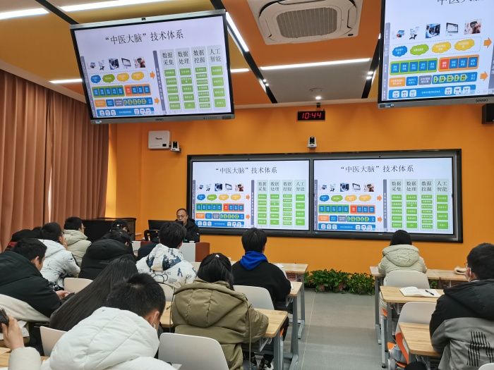 为满足师生多元化的信息资源需求,助力师生更好开展科学研究,12月22日,图书馆特邀中国中医科学院信息研究所专家团队在教学楼B214开展了以“中医药大数据挖掘与智能化应用”为主题的系列讲座。中国中医科学院信息研究所党委书记兼副所长王映辉、中国中医科学院中医药信息研究所大健康智能研发中心主任李敬华分别作了专题报告。图书馆馆长程新、副馆长黄莉参加讲座。