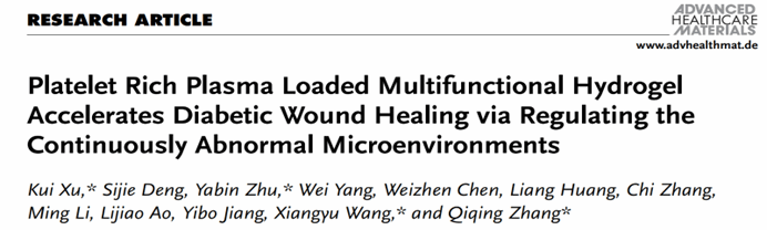 近日,我校科研技术中心(新安医学教育部重点实验室)徐奎研究员团队在国际生物材料顶级期刊《Advanced healthcare materials》(IF=10.0,中科院一区)上发表促糖尿病创面愈合水凝胶的研究性文章。论文第一作者及第一通讯作者为徐奎研究员,浙江大学医学院附属第一医院陈威震助理研究员、深圳市人民医院生物医学工程研究院院长张其清教授和宁波大学医学院竺亚斌教授为该论文共同通讯作者。我校为第一完成单位和第一通讯单位。