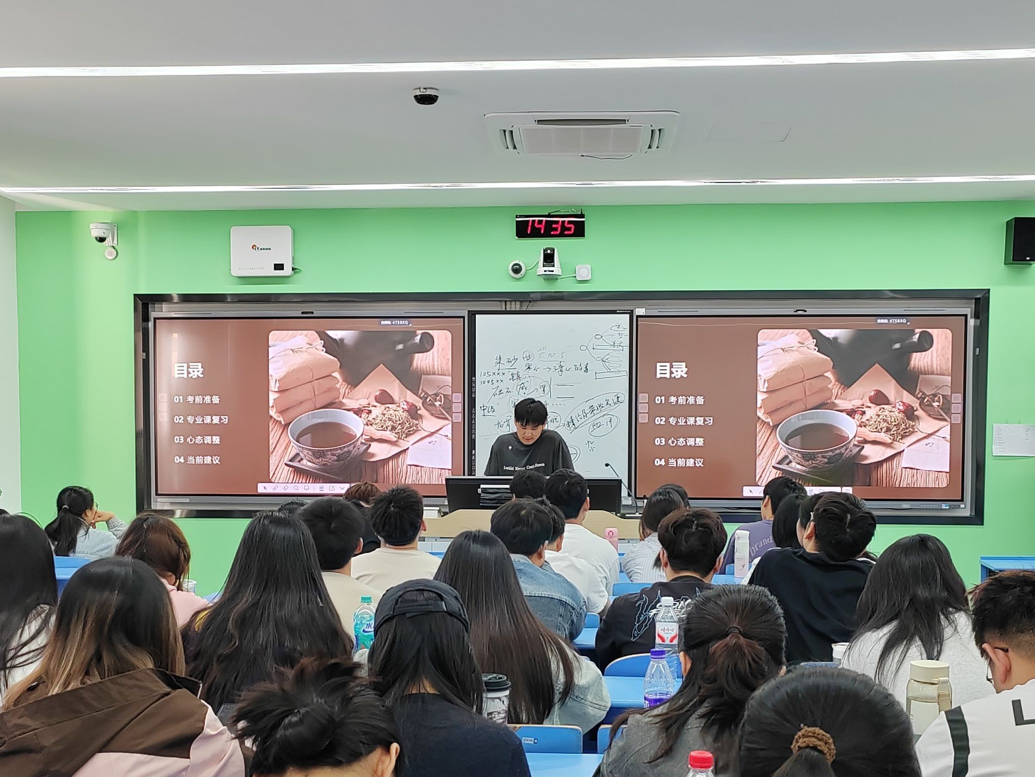 活动现场,马林老师结合自身求学经历,围绕专业学习、科研创新、职业规划等话题展开深入探讨,并耐心解答同学们的疑问。秦高远结合自身保研经历,着重分享了自己大学阶段的学业规划,并就升学院校选择给具体建议。王旭结合自己各科目学习笔记和学习心得感悟,展示了自己采用“思维导图+表格对比”的笔记方法,他强调好的笔记不是照抄课本,而是把知识内化成自己的体系,并建议学弟学妹在学习过程中重视课堂教学,以线上资源为辅,重视基础学科学习。