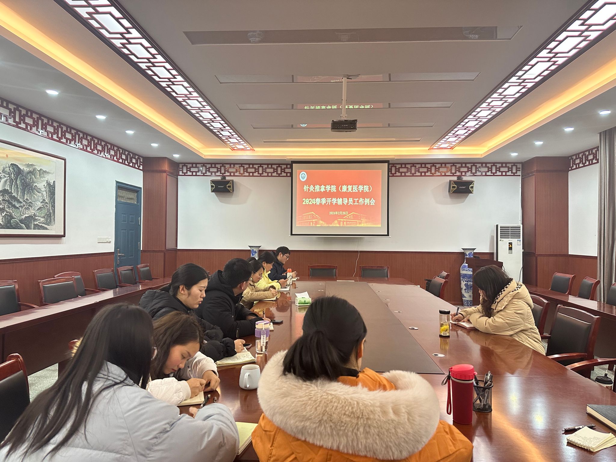 为确保新学期各项学生工作安全、有序、高效进行,2月26日下午,针灸推拿学院于至精楼A325会议室召开本学期第一次辅导员工作例会,会议由学院党委副书记李海燕主持,学院全体辅导员参会。