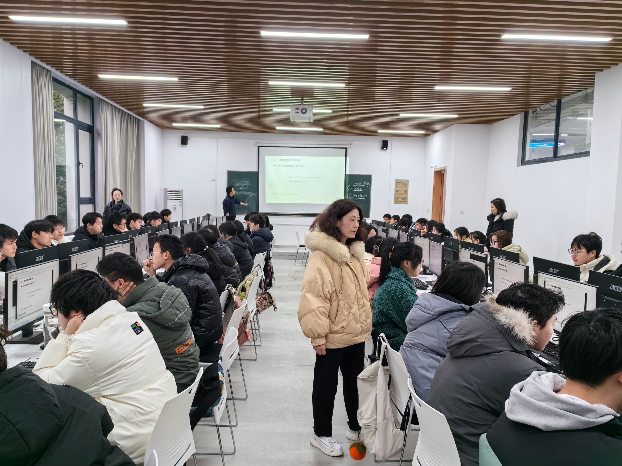 为全面了解教学运行状态,切实保障新学期教育教学工作顺利开展,2月26日至3月1日开学第一周,医药信息工程学院和讯飞现代产业学院领导率教学办、学院督导、讯飞产业学院办公室、学工办、各班级辅导员组成联合检查组,深入课堂,对教师到岗情况、学生到课率、课堂教学秩序、课堂教学质量等方面进行全面检查,并随堂听课,随机听取了《操作系统》《移动技术开发》的课程。