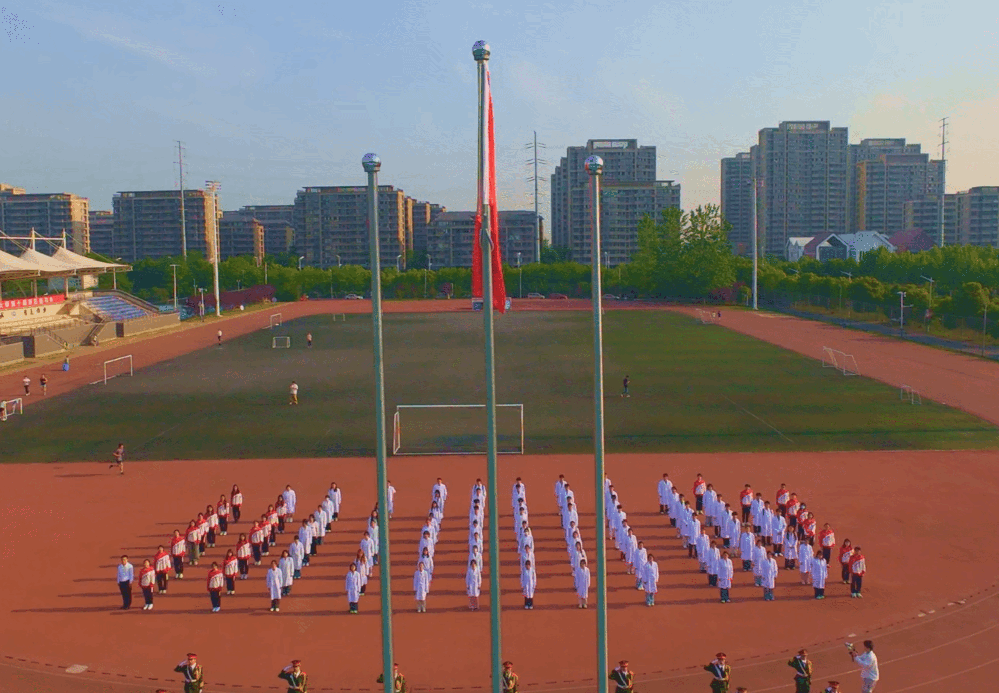 晨光熹微映朝阳,青春步履正铿锵。在庄严的国歌声中,鲜艳的五星红旗随着国歌冉冉升起,全体学生行注目礼,表达对祖国无限的热爱与对共青团事业薪火相传的坚定信念。