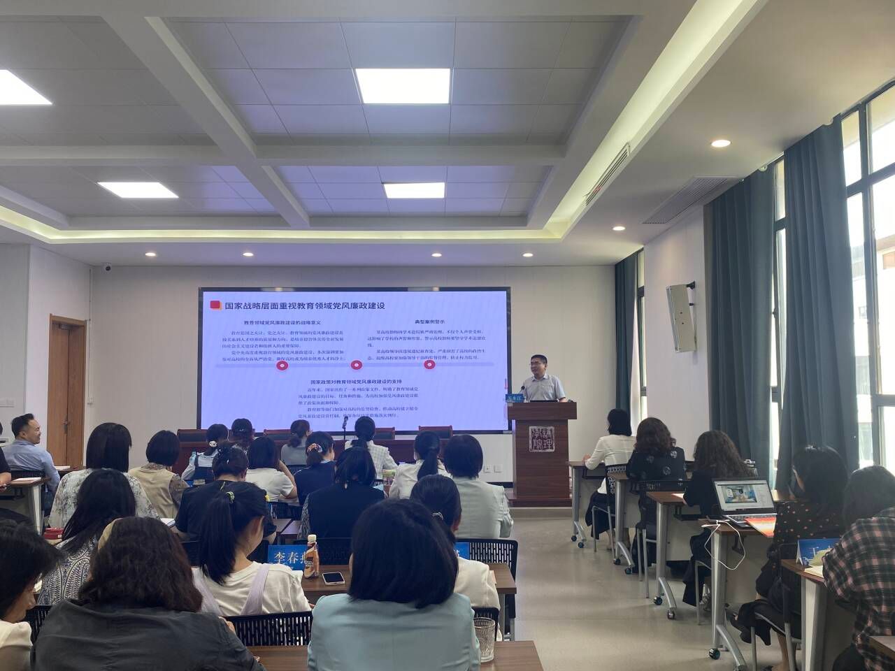 苏本江围绕全面从严治党的深刻内涵、高校全面从严治党的时代背景、高校教师工作中应坚守的底线等内容,结合近年来发生在高校和医疗卫生领域的腐败案件,解读了高校推动全面从严治党的必要性和紧迫性。他要求,广大党员干部和教师要常怀敬畏之心,守牢政治底线、师德底线、纪律底线和法律底线,以争创党员示范岗为契机,深入贯彻中央八项规定及其实施细则精神,为学院高质量发展营造风清气正的政治生态。(赵霄冉/文图 苏本江/审核)