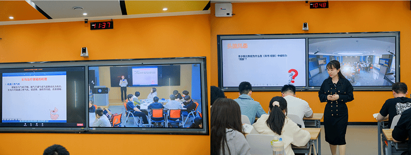 启动仪式结束后,同步课堂正式开讲。上半场由安徽中医药大学国家一流本科课程“经络腧穴学”课程组王洁老师主讲,以“耳脉”为切入点,以手少阳三焦经腧穴应用为核心,结合临床案例,生动展现中医经络理论的实践价值;下半场由内蒙古医科大学奥晓静老师主讲,接“外关”穴位,继续探究天井、清泠渊穴等内容。两位教师循循善诱,结合多媒体与云端互动,将深奥医理化繁为简;南北学子隔空碰撞,实时联动,创新了“同步课堂”教学模式。这堂跨越云端的课程,打造了一堂既有学术高度又满溢人文温度的中医“金课”。