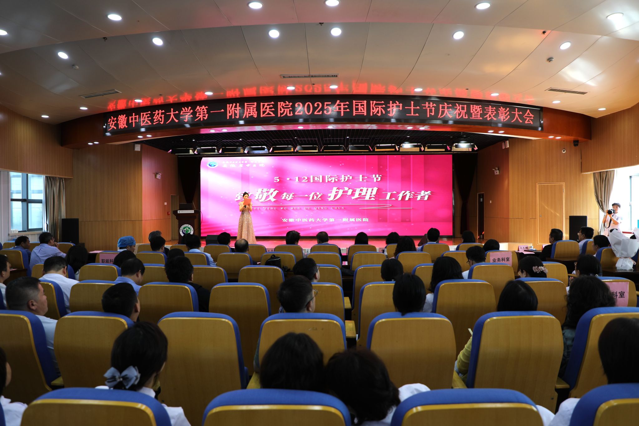 5月12日下午,第一临床医学院召开庆祝2025年“5·12国际护士节暨表彰大会”。医院党政领导班子、安徽省护理学会理事长武义华、学校护理学院副院长管玉香及医院护理管理委员会专家、党总支书记、职能科室和临床业务科室负责人、科护士长、护士长及护士代表参加会议。