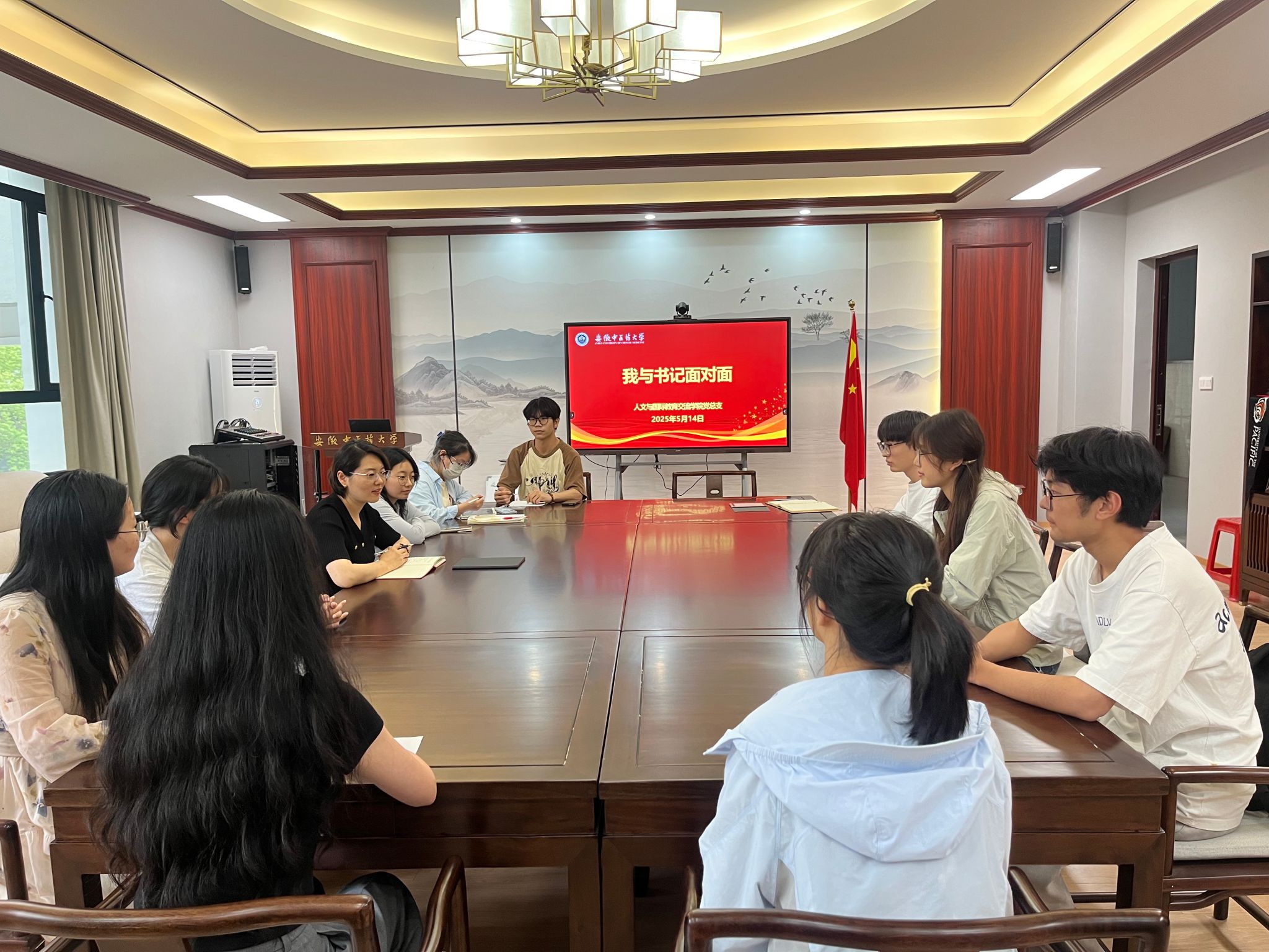 5月14日下午,人文与国际教育交流学院召开“我与书记面对面”座谈会,加强师生沟通交流,务实解决学生实际问题。会议由学院党总支书记叶兰兰主持,各班级学生代表参加了座谈。