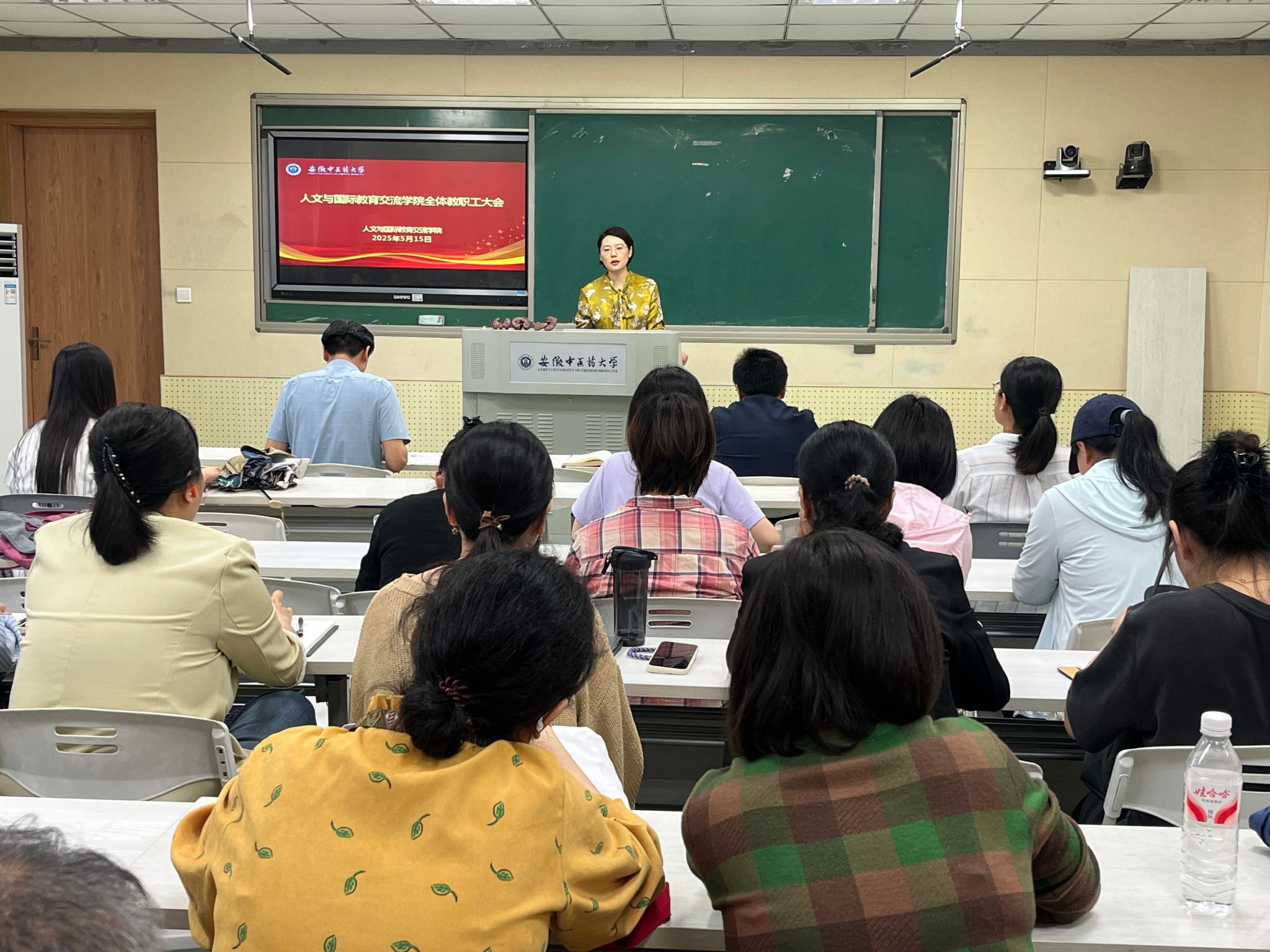 5月15日上午,人文与国际教育交流学院召开全体教职工大会,传达学习学校第三次党代会精神,开展2024年度处级领导班子及处级干部述职考核工作。会议由学院党总支书记叶兰兰主持。