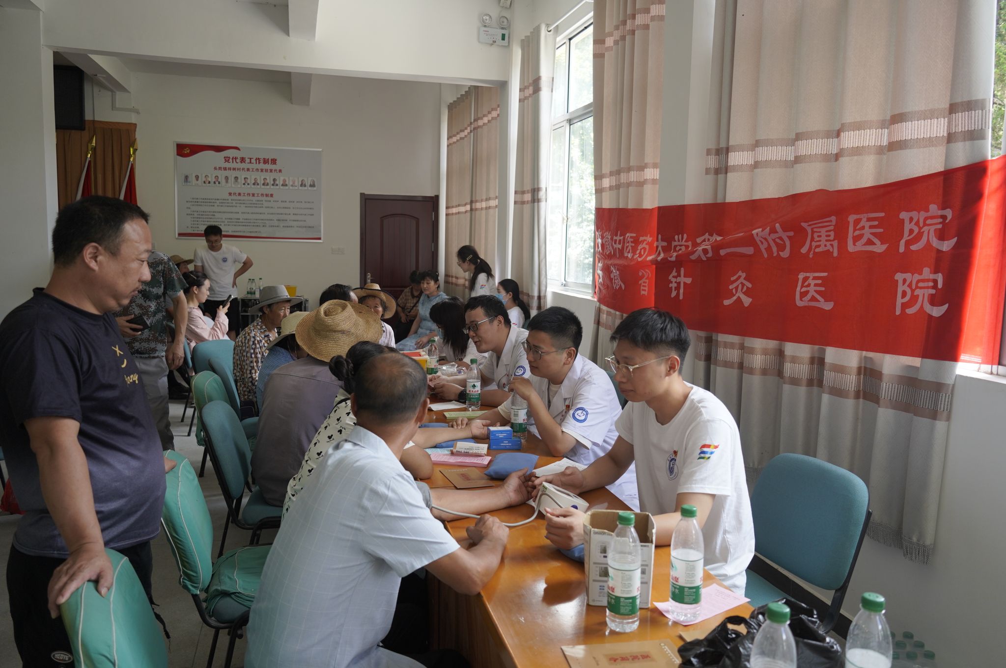 紧盯民生关切,实践团努力立足自身专业优势与特色,在“医”上想办法、办“针”事、解民忧。岳西县头陀镇梓树村最高海拔1200米,属于典型的深山区,村内506户人家两千多人,如今在家的只有七八百名老人和孩童,看病远、看病难成了他们的最大困境。实践团得知该村情况后,从县城驱车两小时赶赴梓树村组织了健康义诊、送药下乡的实践活动,将中医药“简、便、廉、验”优势发挥到实处。徐晓婵等青年医生及研究生党员现场坐诊,为村民们提供了专业的医疗咨询和指导,以及提供针灸、推拿、耳穴贴压、测血压等一系列基础健康服务,解决病痛、温暖民心,累计服务村民200余人次,并向村民分发藿香正气水、板蓝根颗粒、蒙脱石散等药品,宣发中医药健康文化宣传手册及中药香囊,让中医养生保健理念深入人心,让群众在亲身体验中增强对中医药的信任度和认同度。青年人从田野中来,到基层中去,共握“大医精诚”的银针手,同谱振兴新篇章,当好乡村振兴的“卫生员”。