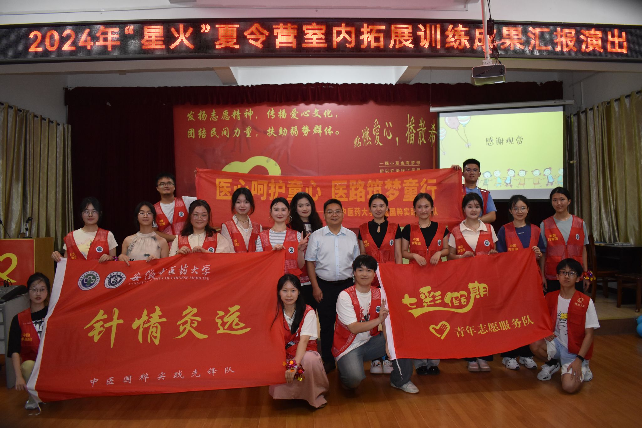 7月14日至24日,第一临床医学院组建的团中央关爱行动“七彩假期”志愿服务团——中医国粹实践先锋队赴安庆市桐城市情系爱心联合会开展“三下乡”社会实践活动。学院党委副书记宋婷婷、桐城市团委书记王小韬、学院团委书记查必祥、指导老师辅导员赵杨琪参加“七彩假期”夏令营开营仪式。