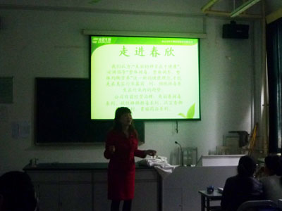 朱老师介绍了公司的发展历程、公司的文化理念、所需人才的标准要求和员工的相关待遇情况。一些今年将毕业学生积极投了简历,并就自己关心事项和用人单位作了进一步的沟通交流。 南京春欣生物科技发展有限公司成立于2001年,总部位于千年古都南京,经过9年的发展,开创了“以江苏为中心,辐射全国”的崭新局面。公司是集美国自然医学研究、培训和健康产业开发与推广教育的特色企业,目前是国内最全面的专业排毒公司。(胡静娴/文图 吴成海/编审)