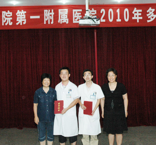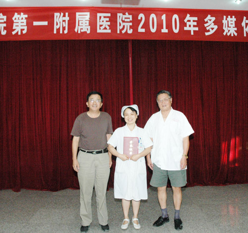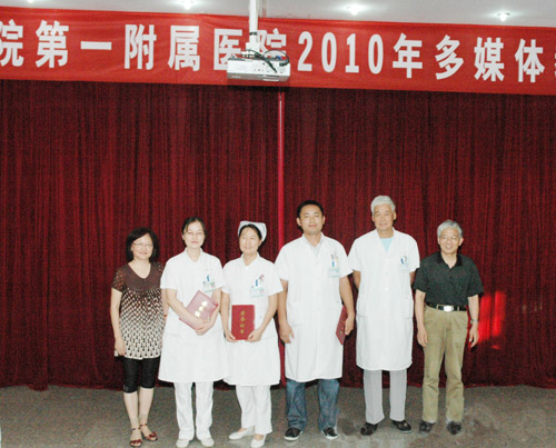 医院副院长尚莉丽(右)、评委为获得多媒体教学竞赛二等奖选手颁奖