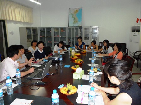 8月16日上午,在韩大文化交流有限公司董事长赵诚惠的引荐下,韩国派往合肥京东方集团的韩国技术人员的家属来我校访问交流,国际教育交流学院院长王茎与韩国客人进行了亲切友好的座谈。