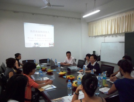 王茎首先代表学校对韩国客人的到来表示真诚地欢迎,并详细介绍了我校基本情况、对外交流与合作及留学生教育情况,特别介绍了我校与韩国的交流合作及互派留学生情况。