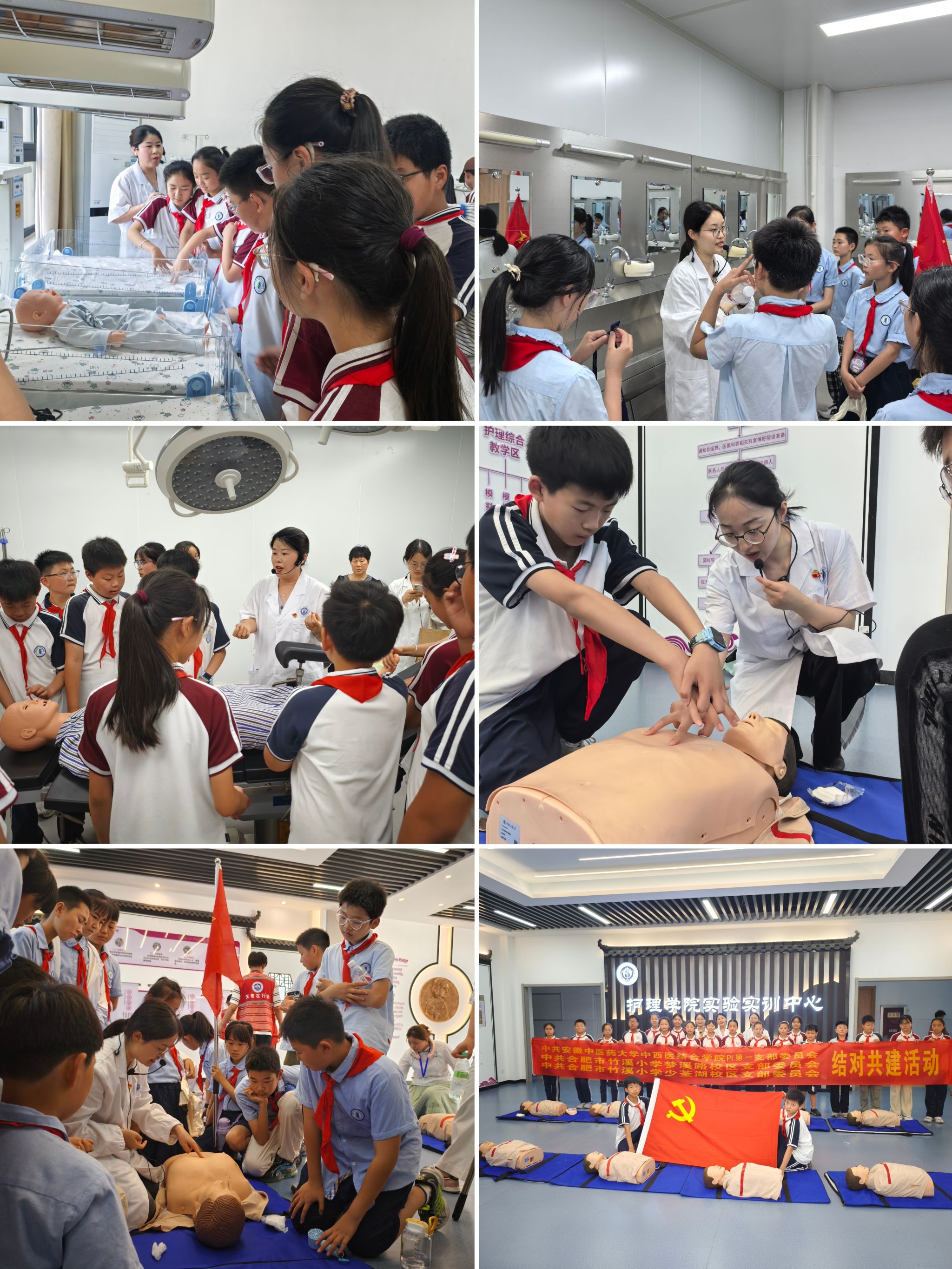 为深入贯彻“健康中国”战略,创新党建育人模式,在全国科技活动周之际,安徽中医药大学中西医结合学院携手合肥市竹溪小学开展“党建联建架桥梁 生命教育润童心”党建共建活动。中西医结合学院党委书记王红松出席活动,来自竹溪小学两校区的40名小学生在党员教师带领下,开启沉浸式生命健康科普之旅。