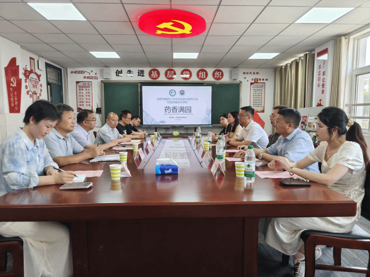 5月20日下午,安徽中医药大学药学院和合肥市第四十中学开展校本课程共建活动。校团委书记彭程,药学院党委副书记陶曜天,团瑶海区委书记胡家娣,药学院中药教师党支部书记杨青山、团委副书记聂欣悦、教师文珊珊以及合肥市第四十中学相关领导老师参加本次活动。