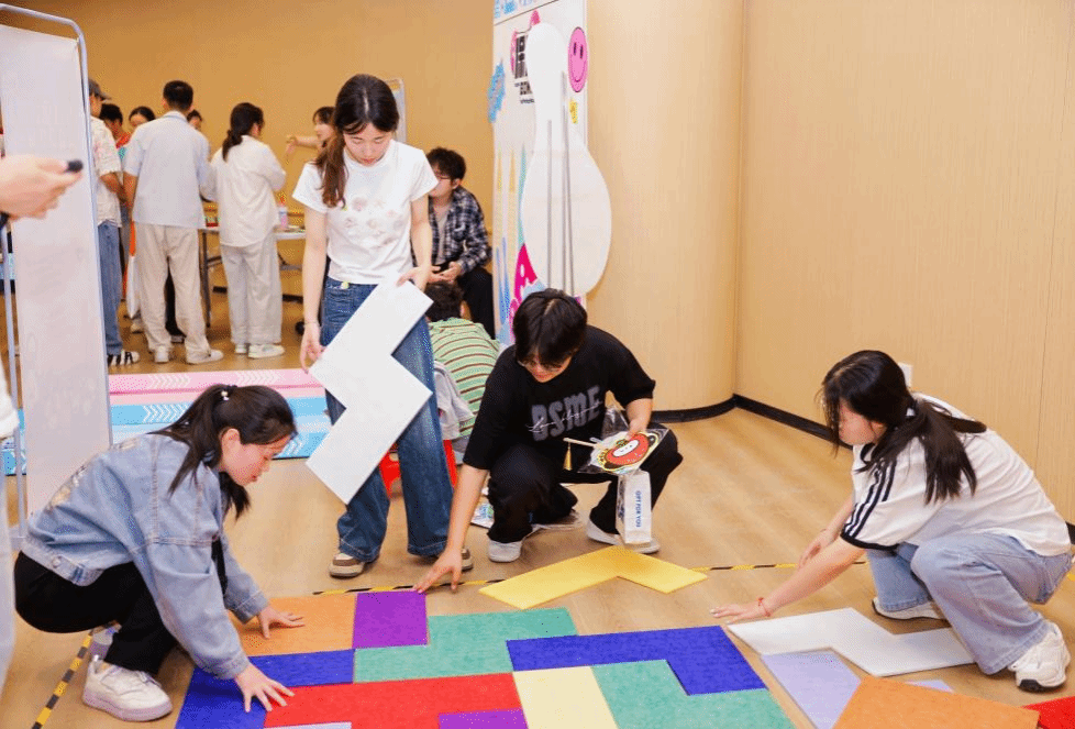 同时开展的“拼出精彩·中西共愈”活动则以团队协作为核心,用拼图游戏搭建心灵联结的桥梁。活动现场,各小组迅速进入“作战状态”:有人俯身仔细确认拼图形状,有人轻声沟通分工策略,有人默契传递方块……在你来我往的协作中,原本零散的图案逐渐拼凑完整。当最后一块拼图归位时,此起彼伏的掌声与笑声交织,不仅见证了团队的力量,更让“沟通、信任、合作”的心理能量在青春的碰撞中自然流动。