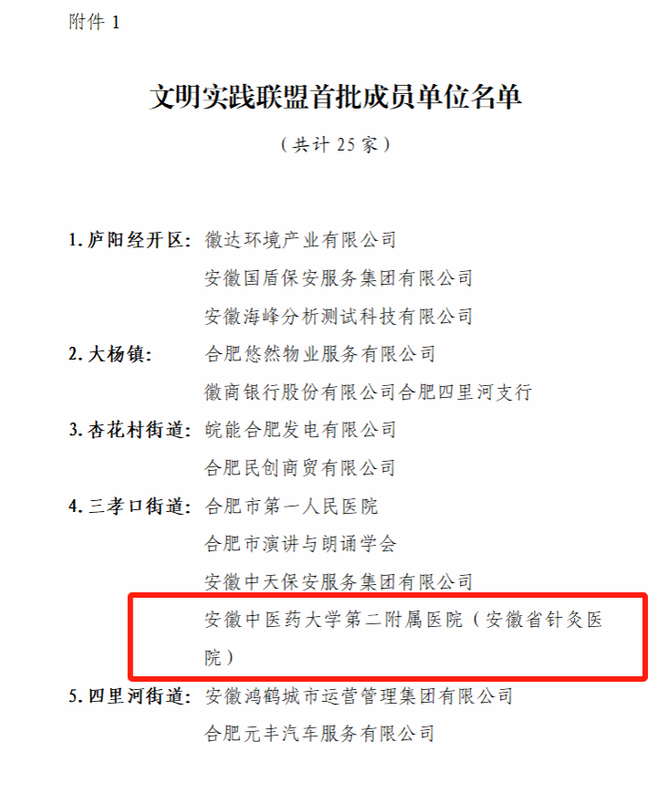 获批庐阳区文明实践联盟成员单位,是对医院精神文明建设工作的肯定。今后,第二附属医院将继续广泛开展文明实践活动,将文明实践与惠民服务深度融合,为庐阳区精神文明建设注入新的活力。(第二附属医院/文图 雷黎/审核)