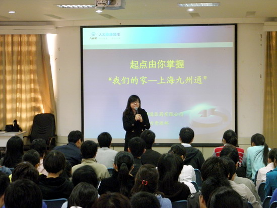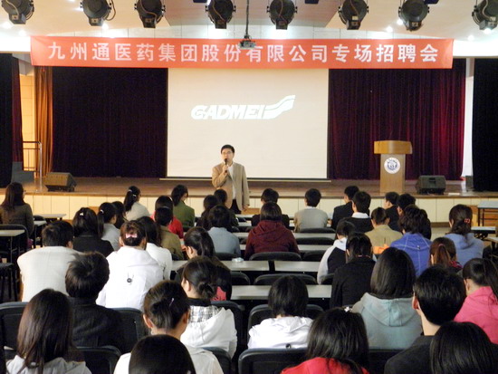 为促进学生就业,提高就业质量,扩大我校毕业生的就业影响力,10月31日,由医药经济管理学院邀请的九州通医药集团股份有限公司来到我校进行企业宣讲和招聘,本次招聘,该集团共带来了包括营销、管理、生产、技术等在内的共300余个工作岗位。