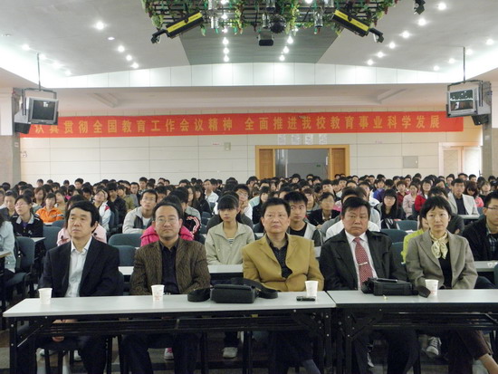 为促进大学生就业创业,帮助大学生树立积极就业的理念,增进校企之间的交流和合作,10月24日,由医药经济管理学院举办的“企业老总进校园系列活动”特邀请上海绿谷集团常务副总裁郭佩军先生来校做题为“创业、激情、梦想”的报告会。会前,学校党委副书记雷广宁,副院长彭代银亲切接待了郭佩军一行。 大会由经管学院院长李珑主持,招生与就业处副处长孟庆全、中西医结合临床学院党总支书记吴成长,医药经济管理学院党总支书记王伟、副院长王其巨、副书记周莉出席了会议,包括经管学院、药学院、中西医结合临床学院、信息工程学院、针灸骨伤临床学院等院部在内的近500名学生参加了报告会。