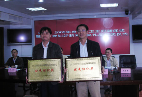 10月15日,由安徽省卫生厅和安徽省新闻工作者协会联合开展的2008、2009年度安徽卫生好新闻奖暨免疫规划好新闻评选结果揭晓,我校一附院荣获优秀组织奖。省卫生厅副厅长杜昌智,省卫生新闻工作者协会名誉会长、原省卫生厅厅长许占山出席颁奖仪式并讲话。一附院党委副书记彭长林代表医院出席颁奖典礼并发言。