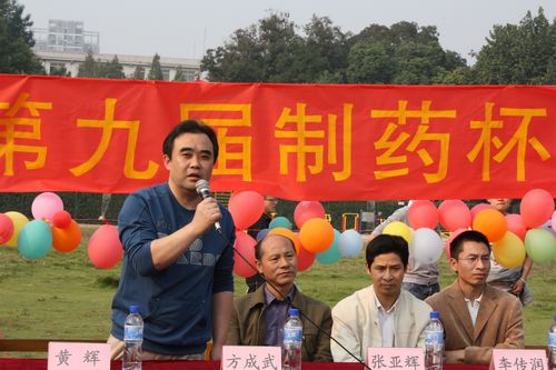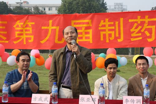 方成武代表我校药学院讲话,提出了加深交流和共同发展的美好愿望,要求全体同学通过此次比赛强健体魄、进一步培养良好的团队协作精神。