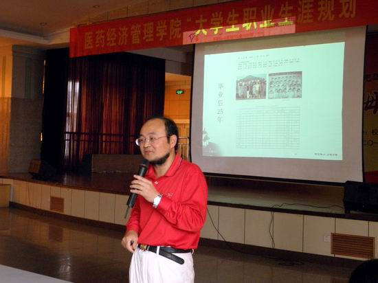 为了做好2011届毕业生实习与就业指导工作,医药经济管理学院党政班子经过认真研讨、精心准备,于近日正式启动此项工作。校党委副书记雷广宁、副院长彭代银听取汇报后分别作出指示,要求经管学院认真抓好此项工作,力争取得更好的成绩。 10月10日,医药经济管理学院举行了2011届毕业生实习就业工作的启动仪式,该院院长李珑就2011届毕业生实习与就业工作作出了具体的要求。同时邀请了该院专业实践基地北京安汀生物医药科技有限公司总经理、国家注册执业药师程雪翔先生做了以“大学生职业生涯规划” 为主题的专题讲座,经管学院、药学院、中西医结合临床学院等近500名学生参加了报告会。