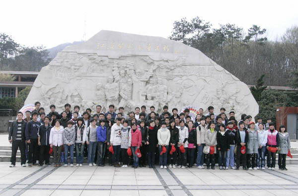 同学们来到大蜀山烈士陵园。从珍贵的革命文物到感人的历史图片,到震撼人心的革命故事,无一不使同学们感受了我党艰苦卓绝的奋斗历程,缅怀了革命先烈的伟大精神,也使同学们对党的先进性内涵有了更加深刻的认识和理解,心灵得到进一步净化。