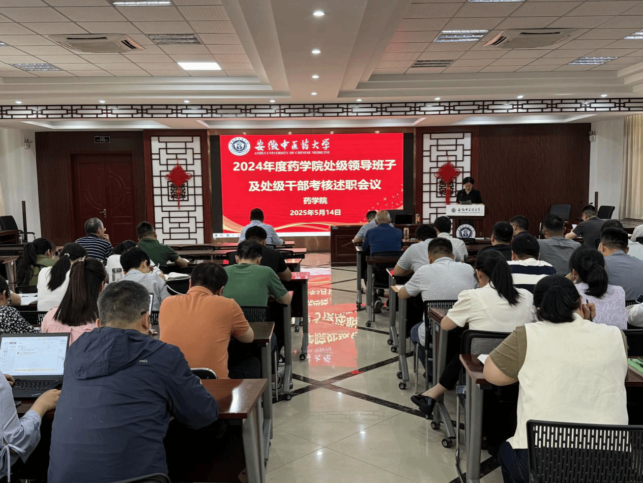 本次药学院处级干部个人采取书面述职的形式,会前已向学院全体教职工公示了个人述职报告。会上,药学院党委委员、副院长韩岚代表学院领导班子作2024年度工作述职,从党建、教学、学科建设、科学研究、对外合作交流及学生工作等方面汇报了学院2024年取得的工作成绩。会议强调2025年学院将深入学习宣传贯彻党的二十大和二十届二中、三中全会精神,全面加强党的建设,切实加强组织领导,全面推进“院办校”试点改革,以高质量的党建引领学院高质量发展。将按照学校的总体部署,聚焦“双一流”,结合学院工作实际,着力推进中药学一流学科、药学高峰培育学科建设,充分整合校内外资源,在国家级平台、学科队伍、教学与人才培养、科学研究、产学研合作与成果转化、对外交流与合作等方面努力突破,为加快建设“优势突出、特色鲜明、贡献卓著”的一流中医药大学贡献力量。(桑屹峰/文图 胡卿/审核)
