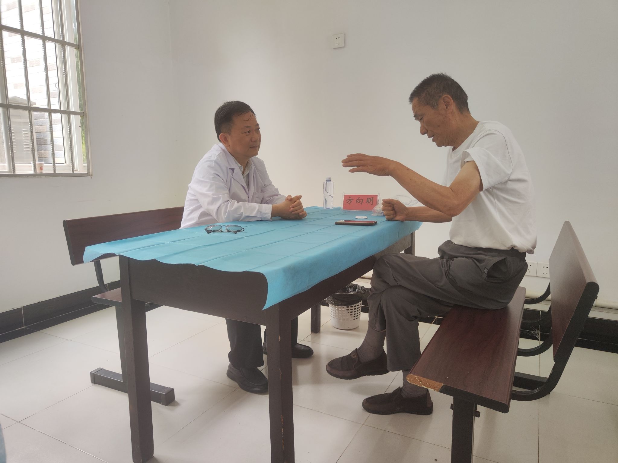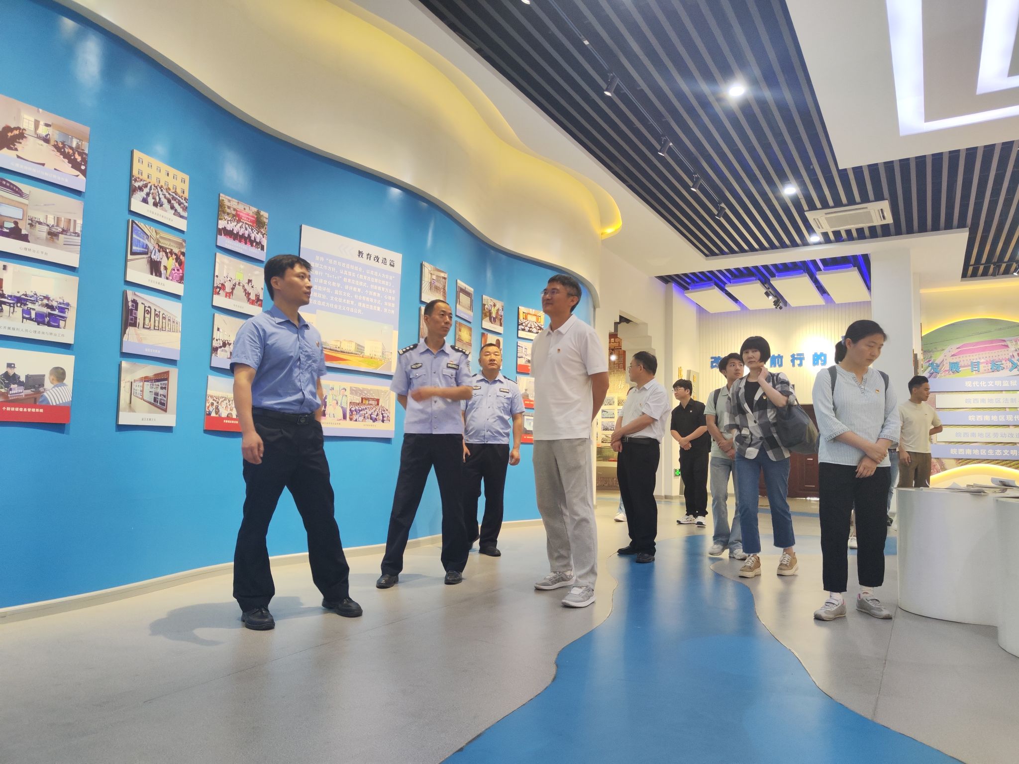 方晓一行来到九成监狱管理分局,参观了陈列馆,了解分局历史。接着,全体人员观看了几名服刑人员讲述自己沦为阶下囚的惨痛经历的警示教育片。随后,专家团队给居民义诊,现场气氛热烈。