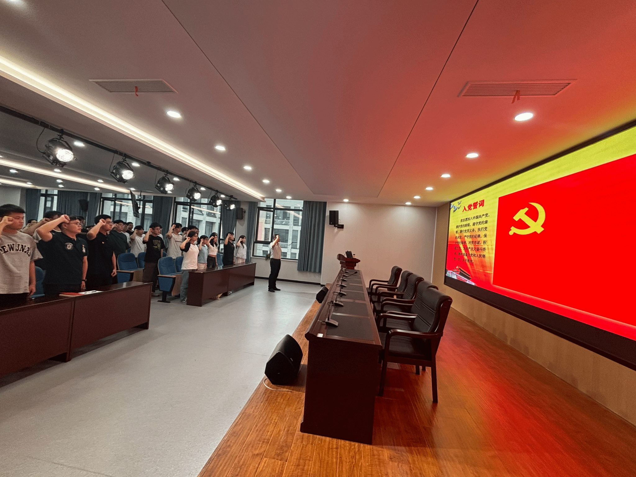 会议结尾,与会全体党员在冯鑫同志的带领下,开展重温入党誓词仪式,进一步引导毕业生党员牢记党员身份,砥砺初心使命。