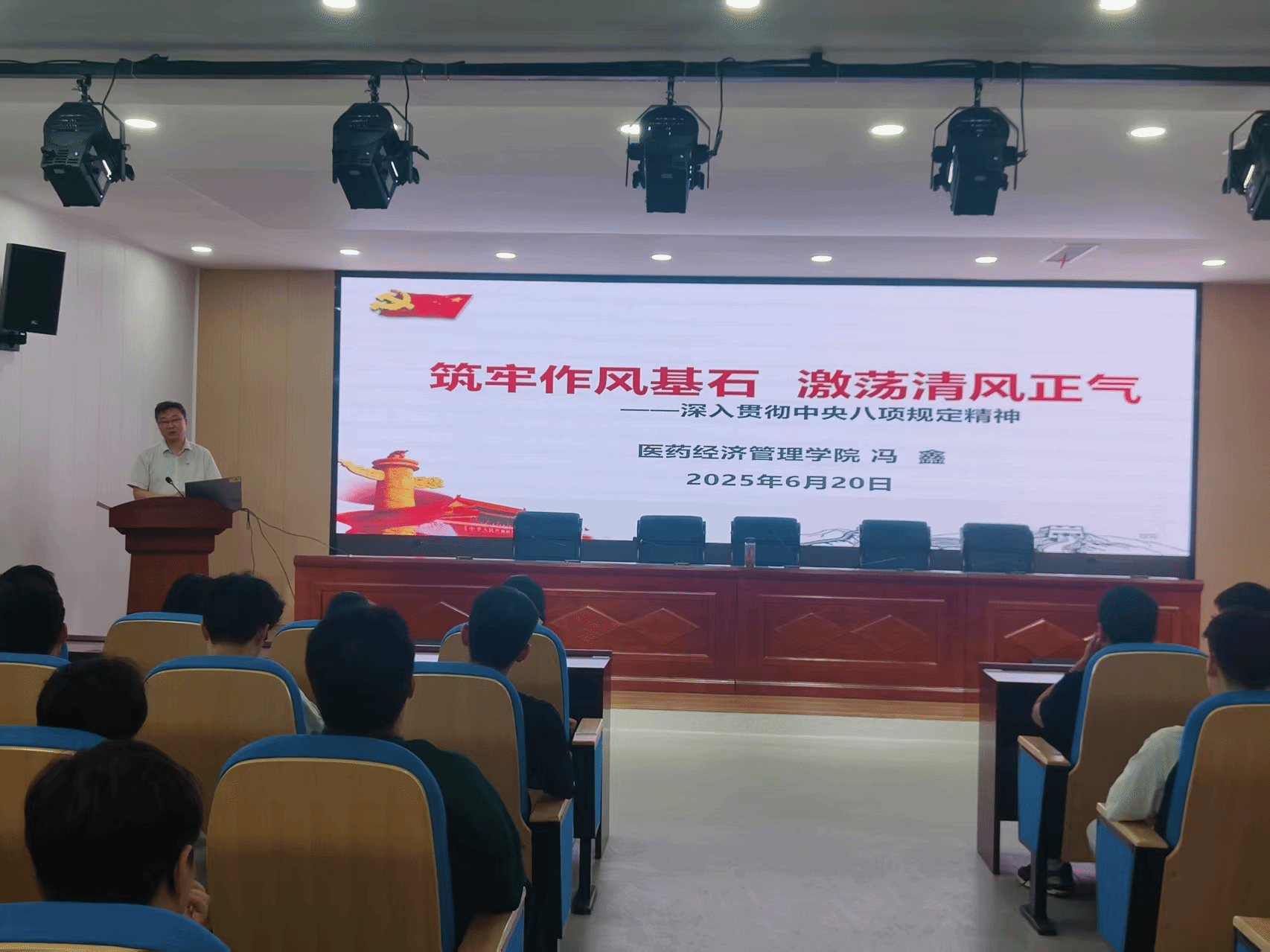 为进一步推进深入贯彻中央八项规定精神学习教育走深走实,增强广大毕业生党员党性修养。6月20日,医药经济管理学院召开2025届毕业生党员大会,学院党委书记冯鑫、各学生党支部书记、各毕业班辅导员、全体2025届毕业生党员参加会议。