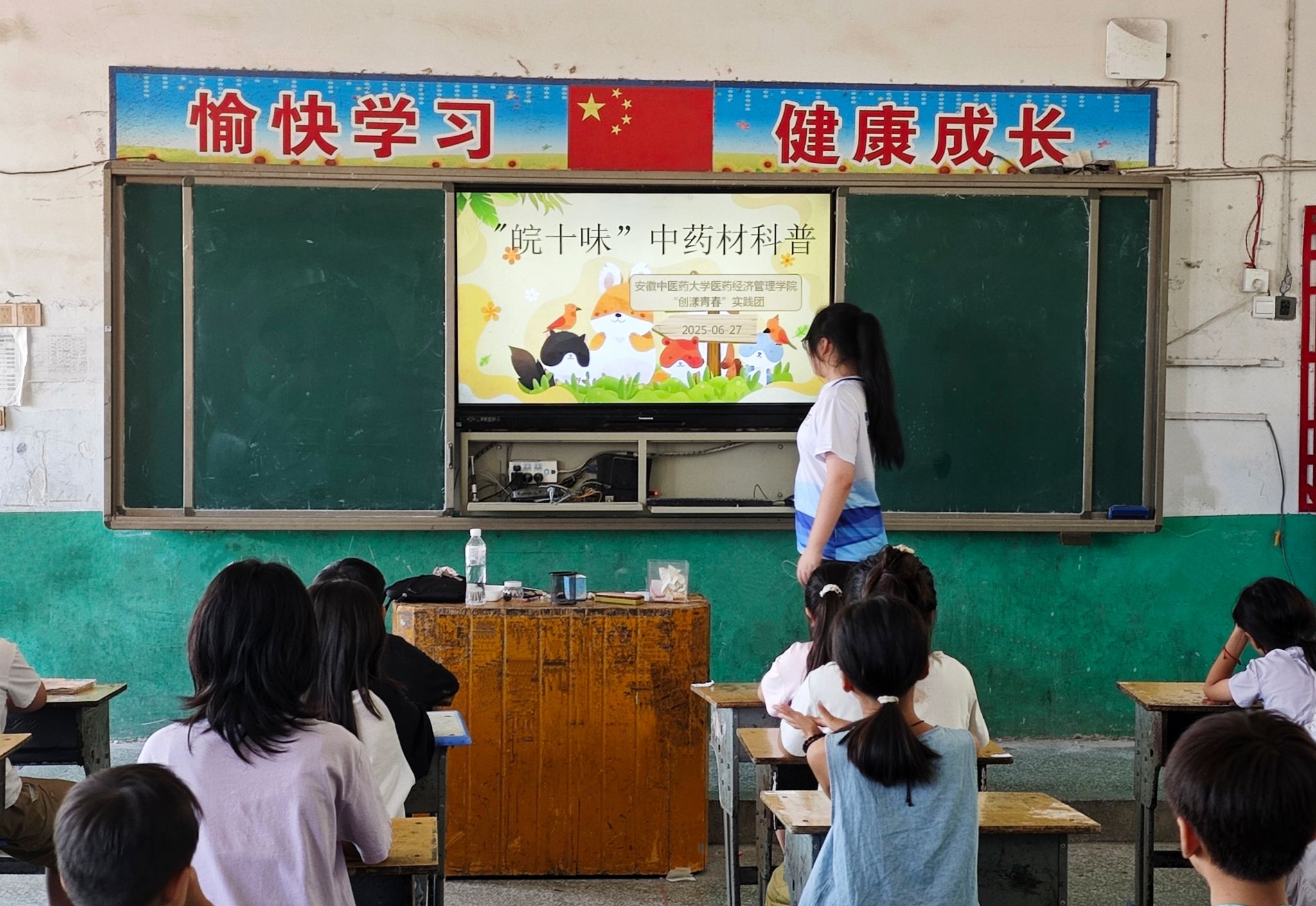 在药王村明德小学,团队成员为孩子们精心策划了一场生动有趣的中医药知识宣讲。通过互动问答情景模拟等形式,将中医药文化以通俗易懂的方式讲授给小学生。活动现场气氛热烈,孩子们积极参与互动,在欢声笑语中感受中医药文化的独特魅力,有效激发了孩子们对中医药文化的兴趣和热爱。