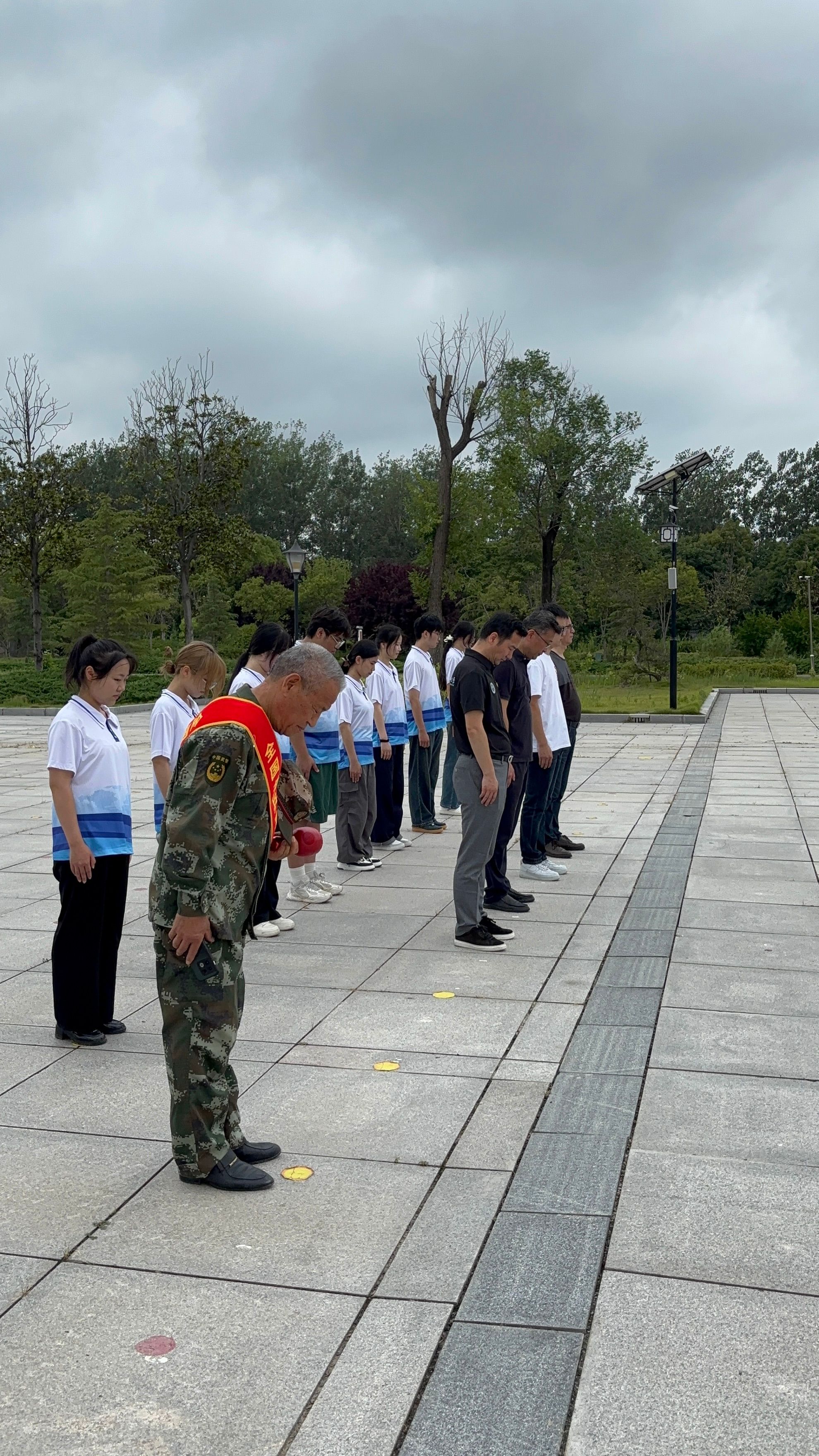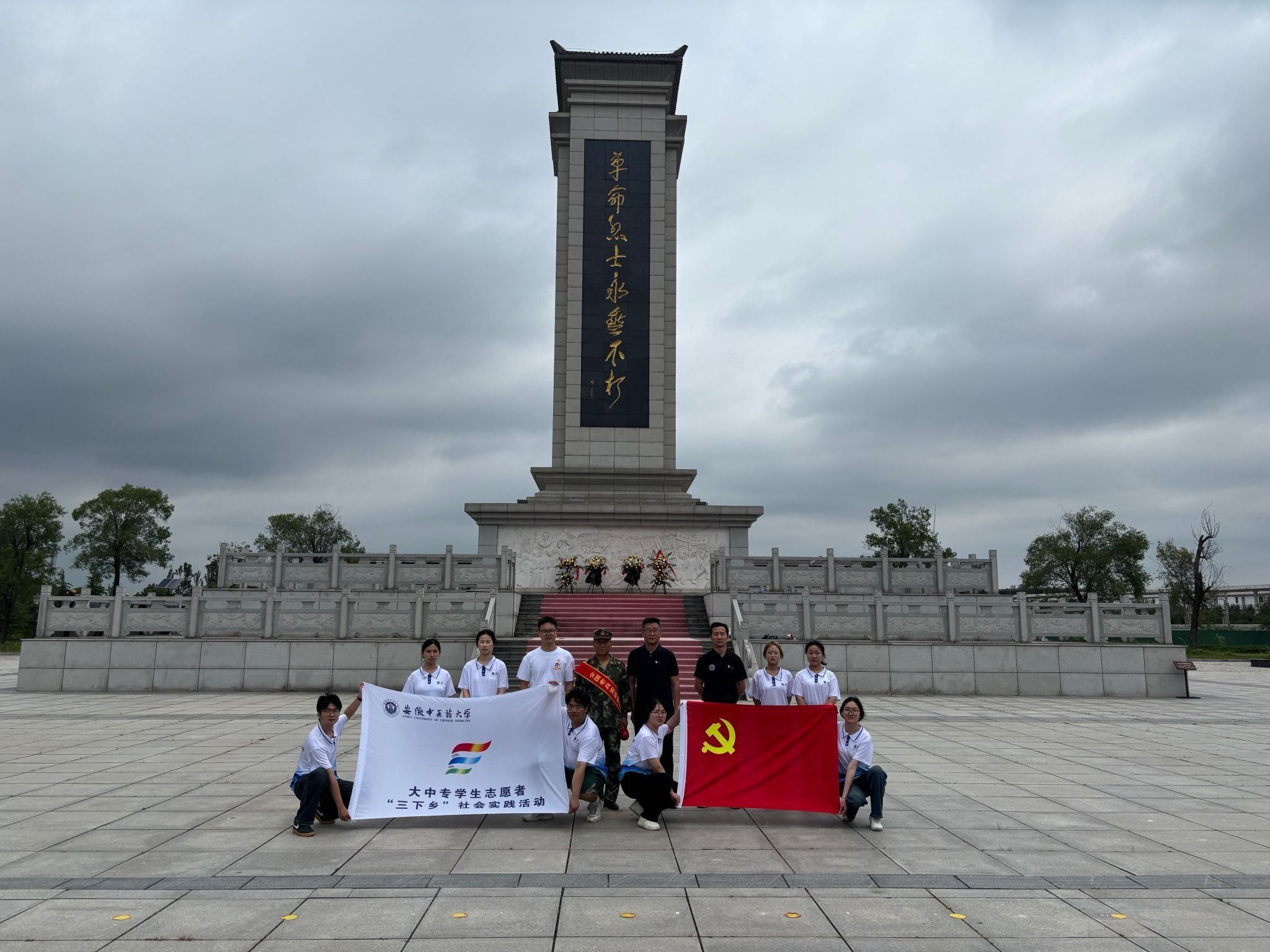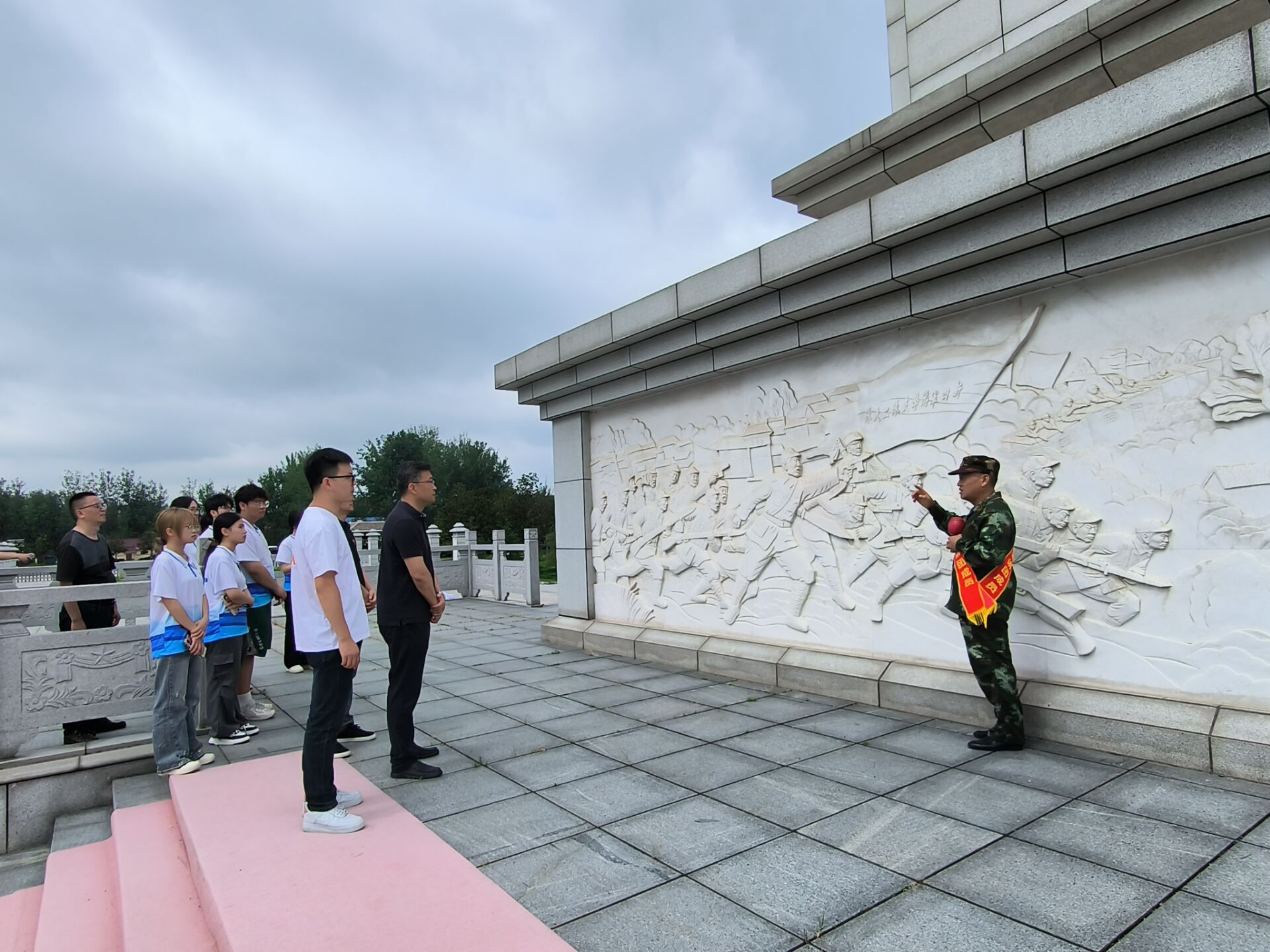 为庆祝中国共产党成立104周年和纪念中国人民抗日战争暨世界反法西斯战争胜利80周年,活动期间,团队前往皖北烈士陵园,瞻仰英雄纪念碑,悼念烈士英魂。在庄严肃穆的纪念碑前,全体团队成员肃立奏唱国歌,并深切默哀,默哀结束后,大家参观了纪念碑四周的大型浮雕与皖北烈士墓群。全国模范退役军人、全国老兵宣讲团成员许玉亭同志为团队成员们讲述了革命先烈们为国家独立、民族解放抛头颅、洒热血的英勇事迹,深深打动了在场每一个人,让大家深切体会到今日和平与繁荣的来之不易,感受到先烈们坚定的理想信念和大无畏的革命精神。