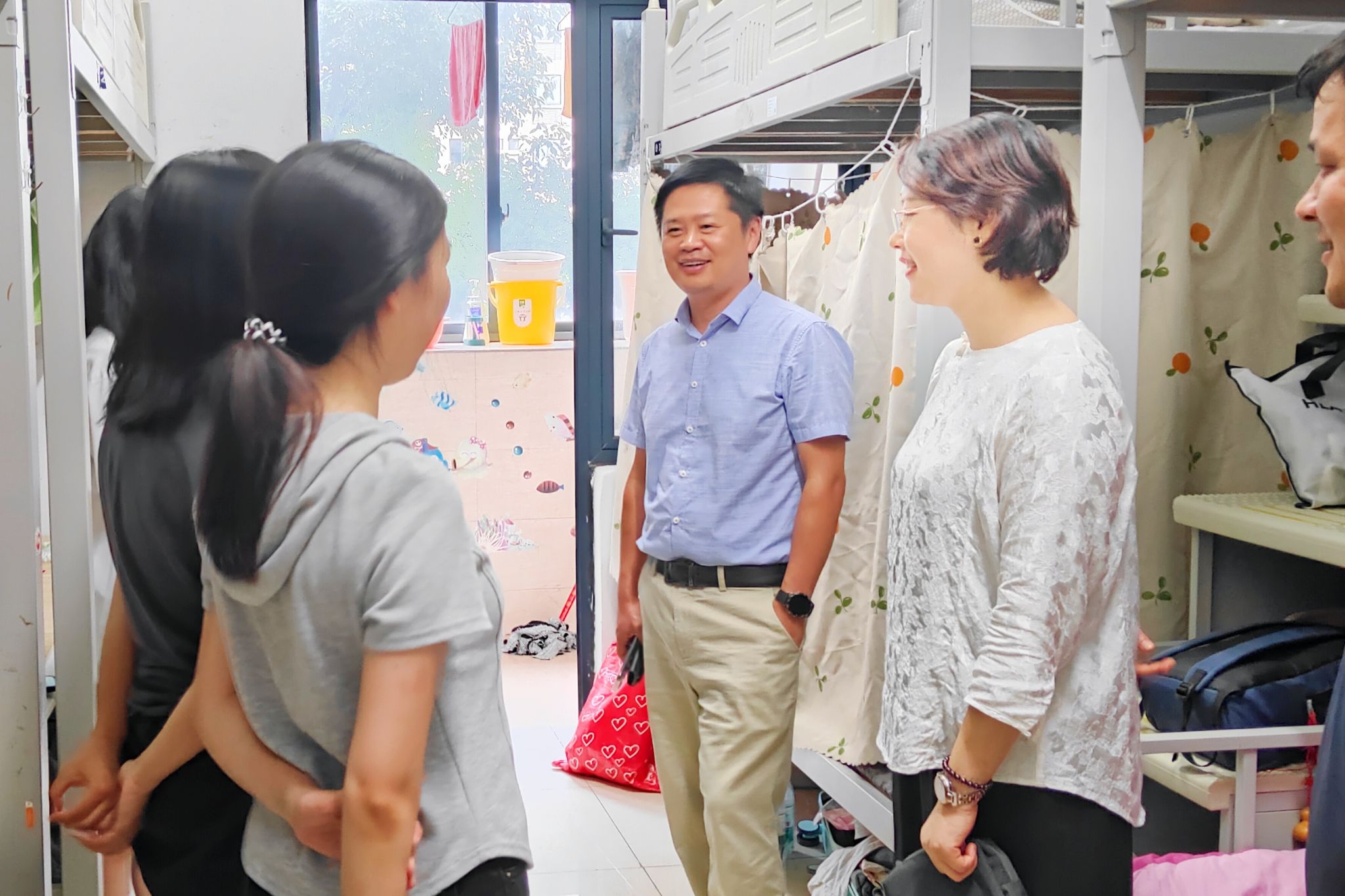 当天下午,学院党政领导带领新生辅导员走访学生宿舍,关心关怀新生校园适应情况,提醒新生们注意个人起居,养成良好习惯,提高防范意识。