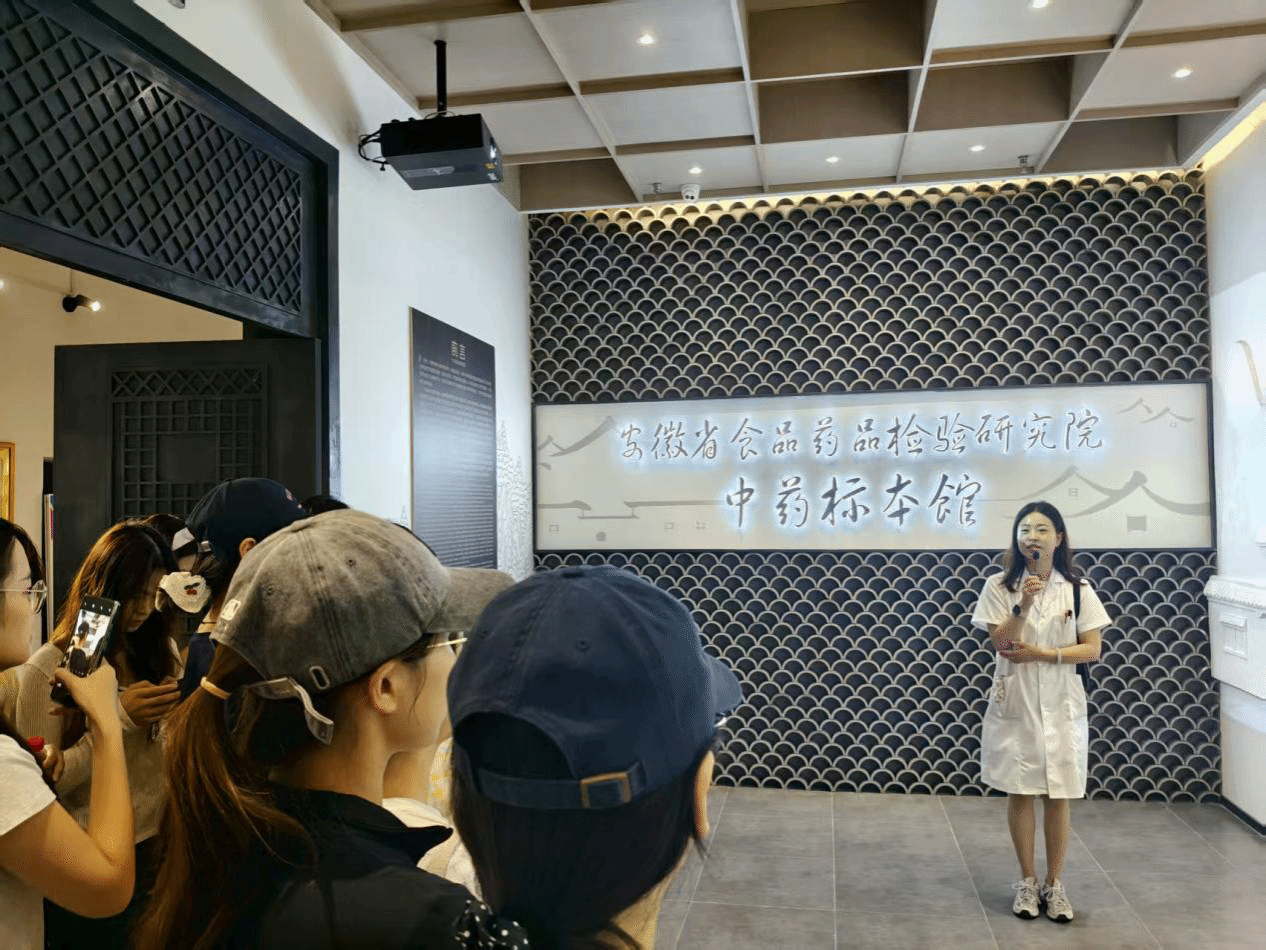 最后参观的是安徽省食品药品检验所实验室。讲解员介绍了药品、食品、器械检验的相关工作,介绍了显微鉴定、薄层鉴定等中药鉴定方法,以及中药辐射检测技术等前沿技术,同学们对药品检验的科学性与严谨性有了更为深刻的认识。