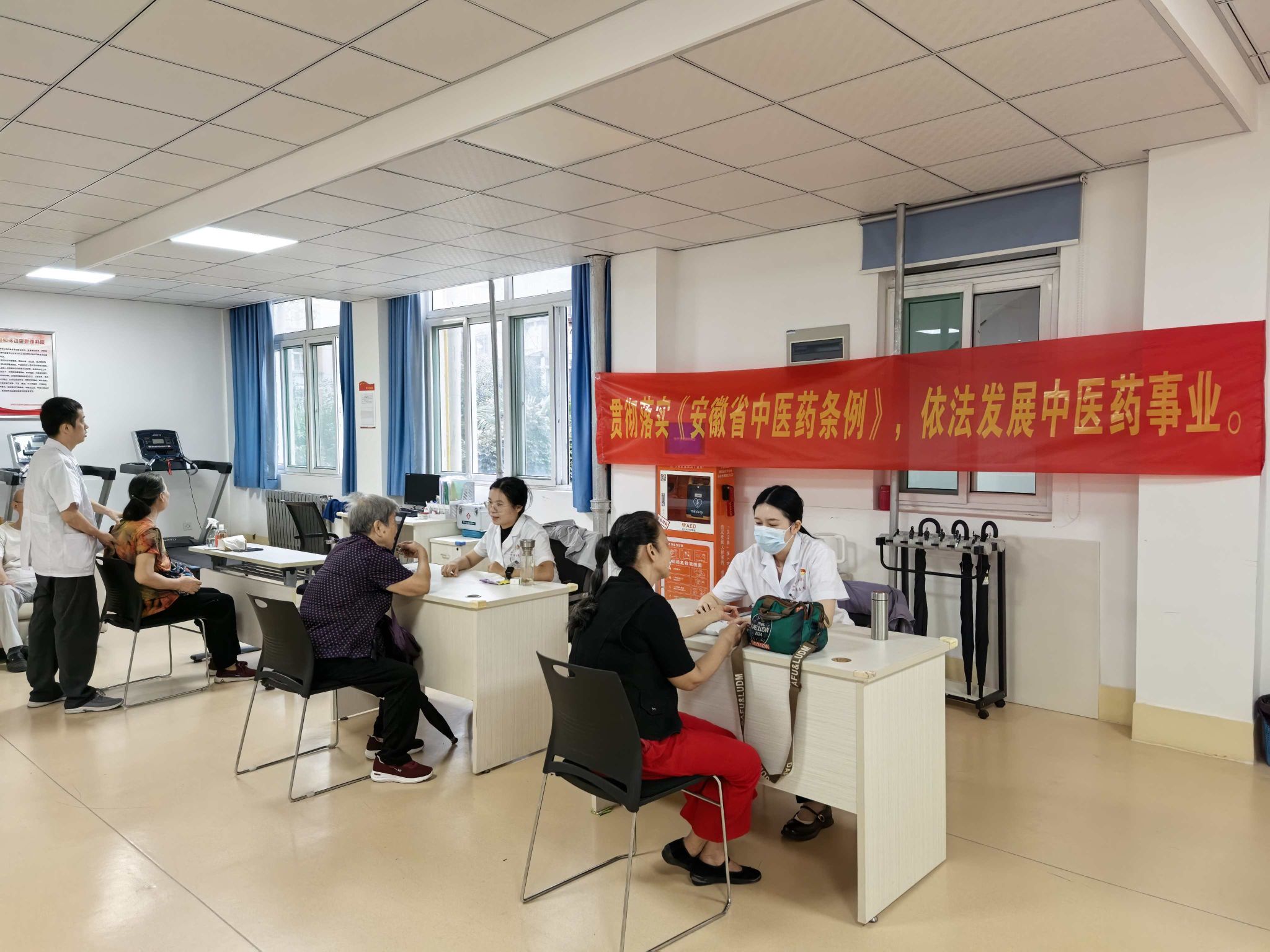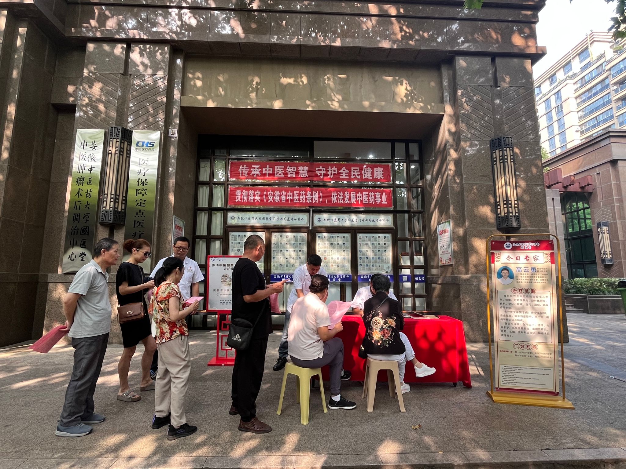中医药文化如璀璨星河,每一次科普都是点亮民众认知的星火。为让更多人感受中医药魅力、了解相关法规,各单位纷纷拿出“看家本领”。合作化路国医堂推出惠民新举措,开展为期一周的家门口免挂号费看诊活动,同时化身文化传播的“接力手”,将《安徽省中医药条例》印制成册,整齐摆放门口、诊室等地,让原本陌生的法规知识,实实在在地走进大家的生活,帮助居民们了解中医药相关政策,让法规知识悄然扎根。在望湖社区“情暖教师节,健康伴师行”义诊现场,医务人员化身亲切的“文化讲师”,在中医师为教师们把脉问诊的同时,将《安徽省中医药条例》用通俗易懂的语言细细讲解。在艾草清香与关切话语交织的氛围里,居民们既收获了健康关怀,也对中医药法规有了更深刻的理解。