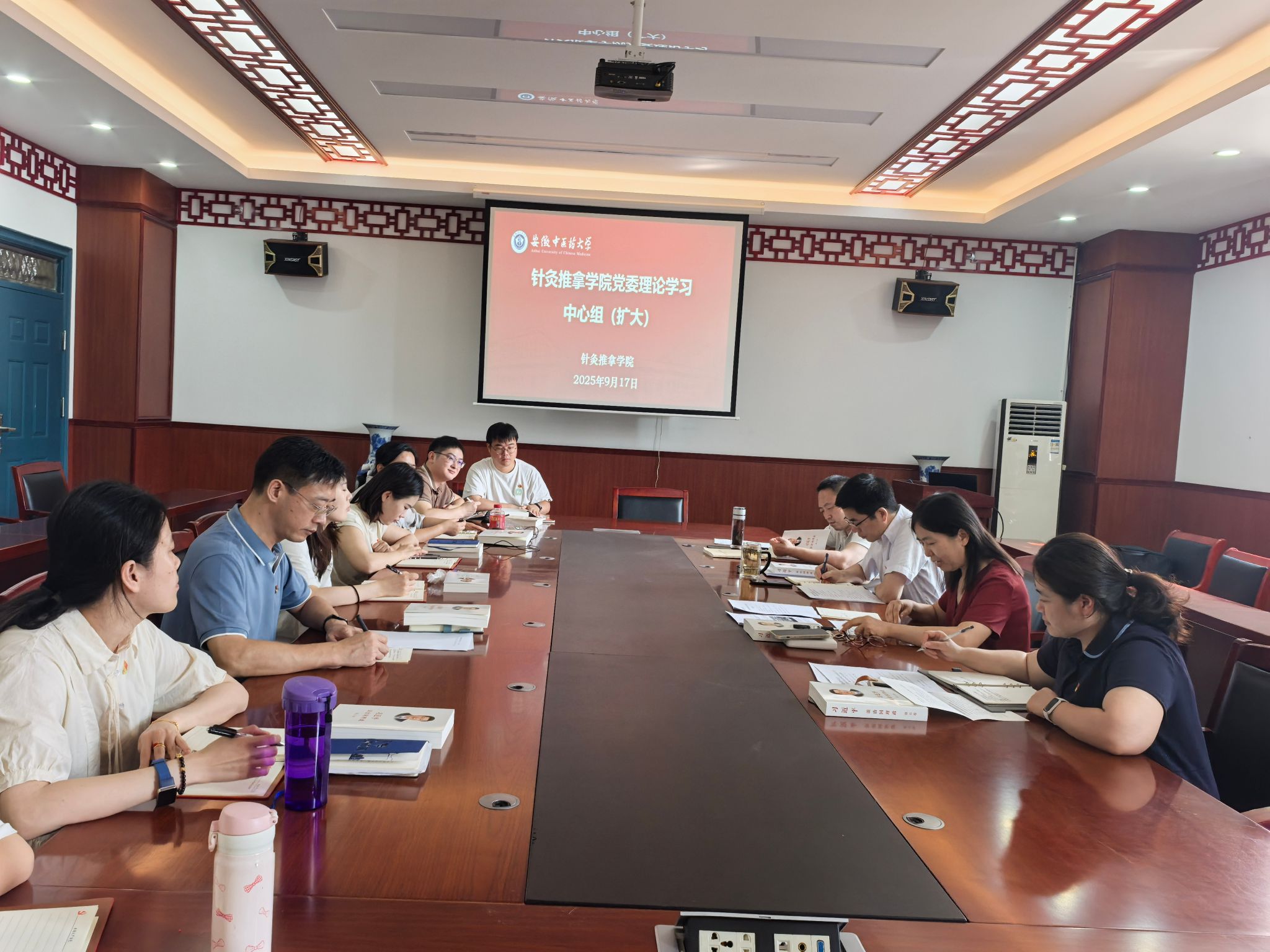 9月17日上午,针灸推拿学院召开2025年度第10次党委理论学习中心组(扩大)学习研讨会,主题为“大力弘扬教育家精神,打造高素质教师队伍”。学院党委书记唐巍主持,党委理论学习中心组成员、各基层党支部书记参会。