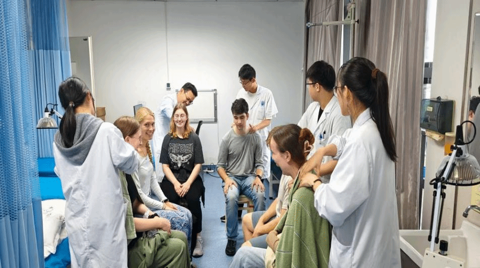 留学生们前往针灸科和推拿科门诊进行观摩学习。他们认真观察了针灸、推拿等中医特色疗法的操作过程,对中医非药物疗法的独特魅力赞叹不已。在体验环节,留学生们踊跃尝试了耳穴贴压、推拿按摩、拔罐以及中医脉诊等项目,直观感受到了中医药技术在防病治病、养生保健方面的显著效果,现场气氛活跃,互动频繁。医院办公室主任朱卫明向每一位留学生赠送了寓意健康与平安的中药香囊。