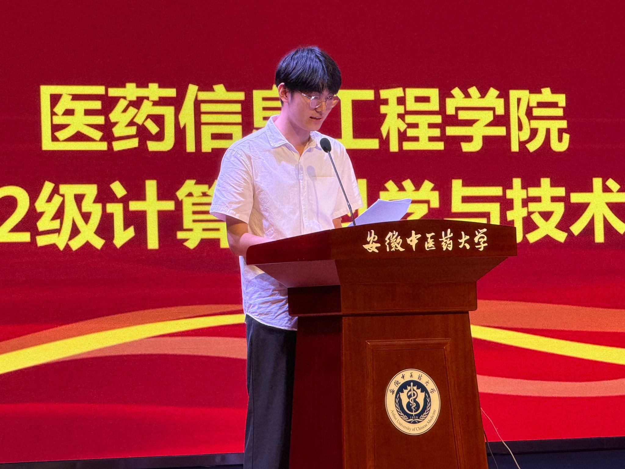 2025级医药信息工程班李梦涵代表新生发言,她表达了对未来的美好憧憬,表示要通过自我“突破”努力,勇于担当时代责任,在大学的新征程上以梦想为指引,奋勇前行,成就更好的自己。