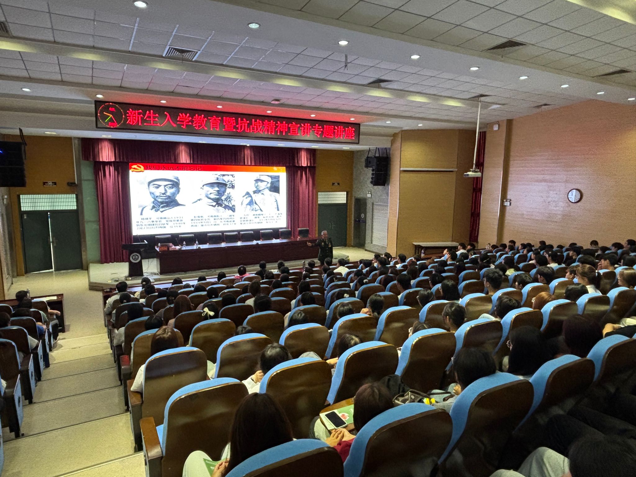 许玉亭以翔实的历史资料和充满激情的讲述,带领师生重温了抗日战争那段波澜壮阔、艰苦卓绝的历史岁月,深刻阐释了伟大抗战精神的深邃内涵与核心要义。他结合多个鲜活的人物案例和自身从军卫国、服务地方、退休后致力红色宣讲的人生阅历,生动展现了如何将伟大精神力量内化于心、外化于行,如何将个人奋斗融入民族复兴伟业,为新生们上了一堂鲜活深刻的历史课、思想政治课和初心使命课。