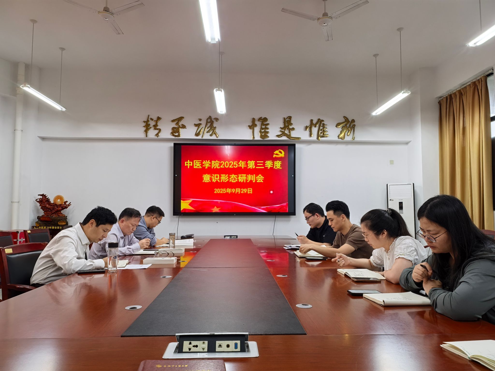 9月29日下午,中医学院召开2025年度第三季度意识形态工作专题研判会,学院党政领导班子、各办公室参会,会议由党委书记张亚辉主持。