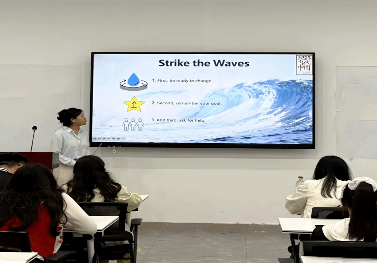 比赛以"Strike the Waves"(破浪前行)为主题,分为定题演讲与即兴问答两个环节,吸引了众多学生参与。选手们结合专业特色与个人感悟,用流畅的外语讲述中国故事、传递青年声音。经过激烈角逐,2025级学生曾嘉仪和2022级学生李宇璇两位同学脱颖而出,荣获比赛一等奖,并将代表学院参加校级决赛。