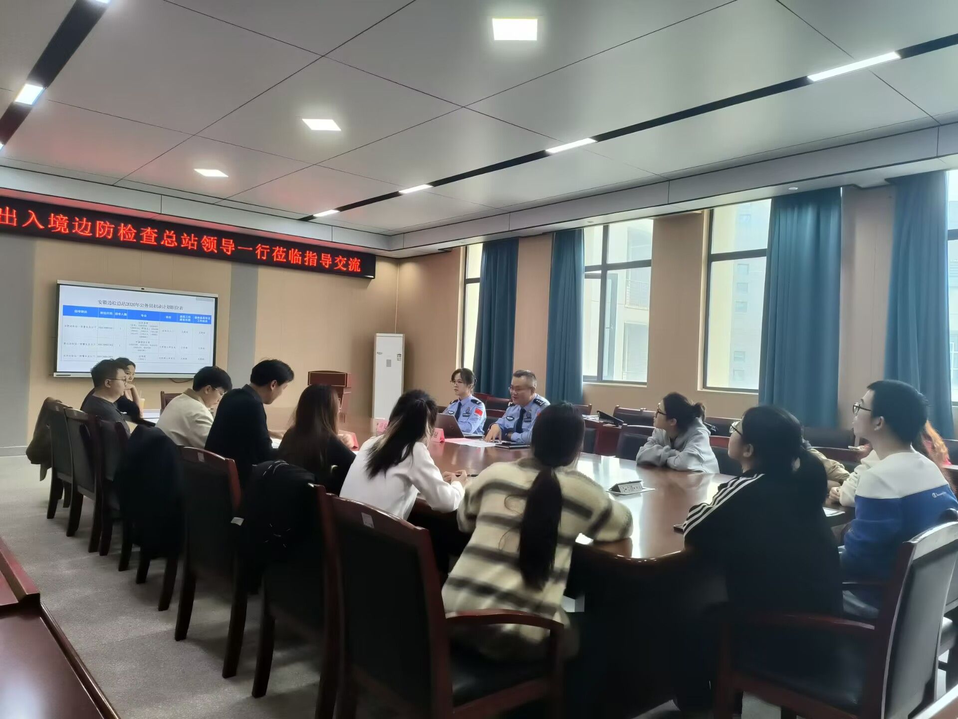 彭青和代表学院对安徽出入境边防检查总站民警一行表示欢迎,并详细介绍了学校、学院的发展历程、学科建设及人才培养成果等。鼓励2026届学子把握机遇,积极投身国家机关单位工作,在实践中实现个人价值;希望通过此次宣讲会为毕业生提供优质就业资源,助力学子实现职业理想。